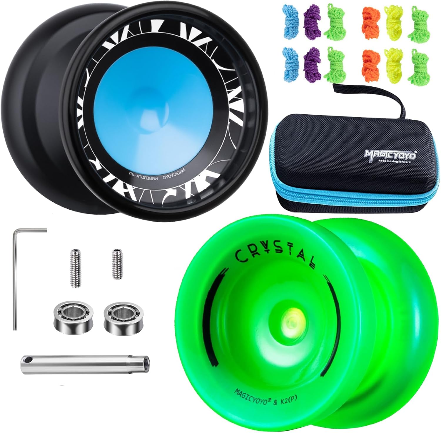 Wow, dieses MAGICYOYO V8S ist ja der absolute Hammer für alle YoYo-Fans! Das besondere 2-in-1 Design wächst mit deinen Fähigkeiten mit. Als Anfänger startest du im responsive Modus - das YoYo kommt einfach mit einem Zug zurück, perfekt für die ersten Tricks. Wenn du besser wirst, wechselst du einfach das Lager (im Lieferumfang enthalten) zum unresponsive Modus für komplexere Tricks und längere Spins. Die spezielle Finger-Spin-Nabe mit Dimple-Vertiefung macht DNA-Tricks und andere Finger-Spin-Tricks super einfach. Aus robuster Aluminiumlegierung CNC-gefräst, liegt es perfekt in der Hand und ist super ausbalanciert. Ideal für Kinder ab 8 Jahren, aber auch für Erwachsene, die wieder ins YoYo-Spiel einsteigen wollen. Im Lieferumfang sind auch Ersatzschnüre enthalten. Egal ob du kompletter Anfänger bist oder schon fortgeschritten - mit diesem YoYo lernst du spielend leicht coole Tricks und verbesserst deine Skills. Einfach werfen, üben und staunen, was alles möglich ist!