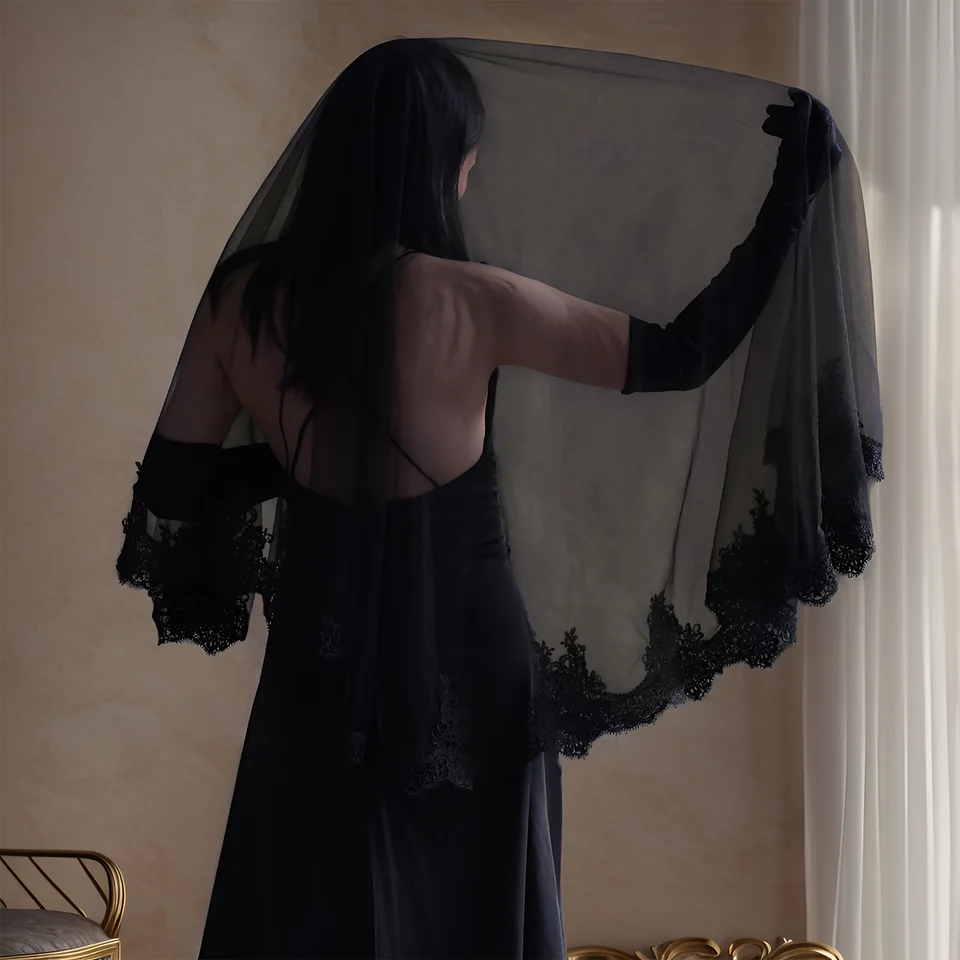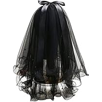 Dramatisch und wunderschön! Dieser schwarze Gothic-Hochzeitsschleier mit zwei Lagen (55cm innen, 45cm außen) ist ein absoluter Hingucker. Aus leichtem Polyester-Netz und mit elegantem Schleifenband - atmungsaktiv und fällt traumhaft. Der praktische Kamm hält den Schleier sicher auf dem Kopf, ohne die Frisur zu ruinieren. Perfekt für alternative Hochzeiten, Gothic-Partys, Halloween oder Cosplay. Ob als Brautschleier, für eine Hexenverkleidung oder auf der Bühne - damit fällst du auf! Leicht zu pflegen: Bei Falten einfach aufhängen und dämpfen, mit kaltem Wasser waschen. Sieh aus wie die Herrin der Dunkelheit - einfach umhängen und verzaubern!