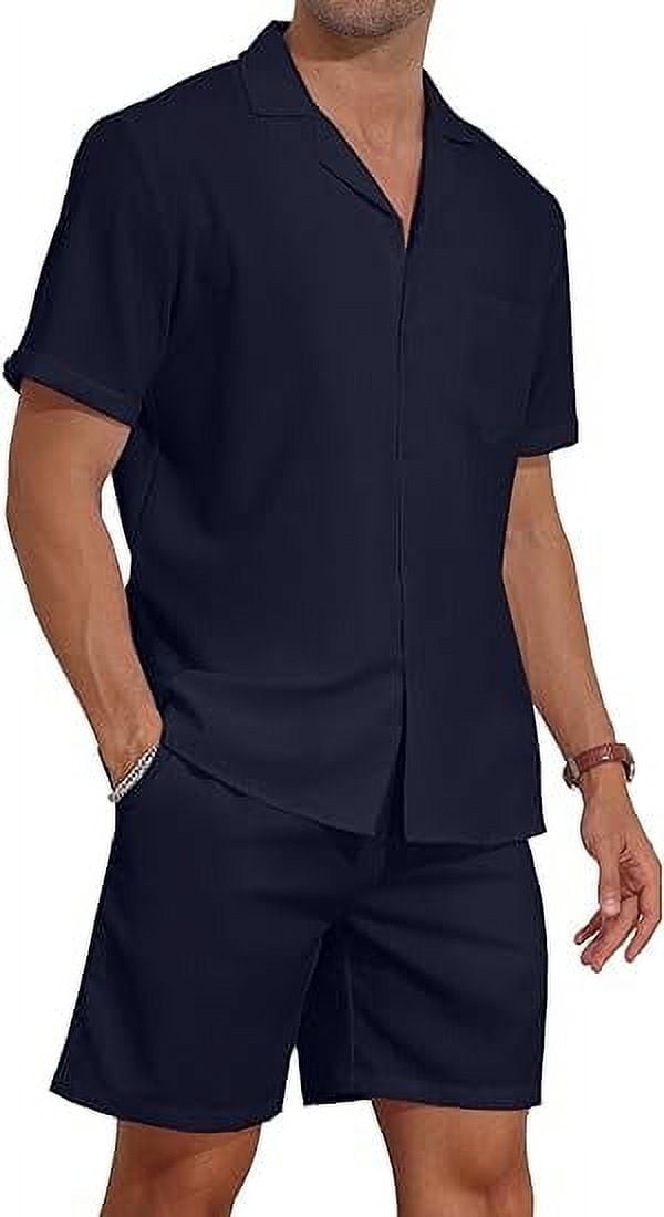 Perfekt für den Sommer! Dieser lässige 2-teilige Leinenanzug besteht aus atmungsaktiver Baumwoll-Leinen-Mischung und ist ideal bei heißen Temperaturen. Das kurzarm Hemd und die passende Shorts sehen stylisch aus, sind aber super bequem.