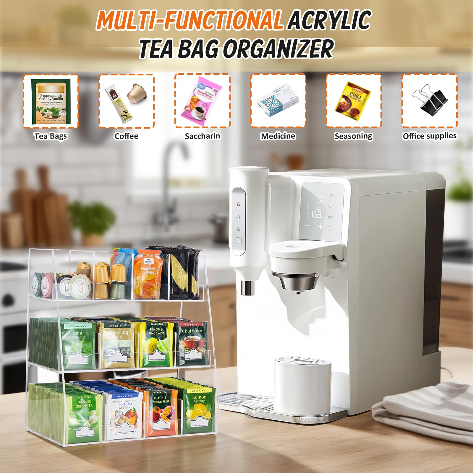 Boah, Ordnung muss sein - besonders bei Tee! Der FoiiLiio Organizer hat zwei praktische Schubladen, komplett aus transparentem Acryl. Siehst du sofort, was wo ist. Maße: 23x17x8 cm - passt super in jeden Küchenschrank oder auf die Arbeitsplatte. Absolut rostfrei und mega leicht zu reinigen. Das geniale: Die Teile lassen sich stapeln! Mit Anti-Rutsch-Rillen oben und coolen Verbindungselementen unten. Nicht nur für Tee geeignet - auch für Kosmetik, Büroklammern oder Bastelsachen. Hält deine Küche sauber und aufgeräumt. Einfach rausziehen, Teebeutel nehmen, wieder reinschieben - easy! Macht aus dem Chaos ne richtig coole Ordnungs-Lösung. Perfekt für Zuhause oder Büro.