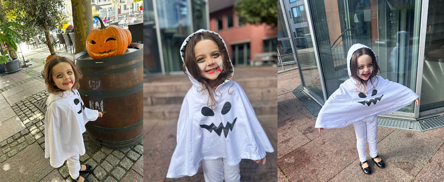 Oh wie niedlich! Dieses Baby-Geist-Kostüm ist perfekt für die erste Halloween-Party deines Kleinen. Das 2-teilige Set besteht aus einem süßen Umhang mit Kapuze und einer passenden Hose. Der Umhang ist aus 100% Polyester, die Hose aus 95% Baumwolle und 5% Polyester - also super weich und hautfreundlich für die zarte Babyhaut. Das lächelnde Geister-Gesicht auf der Kapuze sieht einfach urkomisch aus! Die hellen Farben machen dein Baby zum absoluten Hingucker auf jeder Halloween-Feier. Ob für die Kita-Party, zum Süßes-oder-Saures gehen oder einfach nur für tolle Fotos - mit diesem Kostüm wird dein Kleiner garantiert zum Star. Die elastische Taillenbund der Hose sorgt für perfekten Tragekomfort. Du kannst das Set komplett anziehen oder die Teile auch einzeln kombinieren. Einfach das perfekte Geschenk für alle Halloween-Fans mit Baby - damit wird die Gruselsaison unvergesslich!