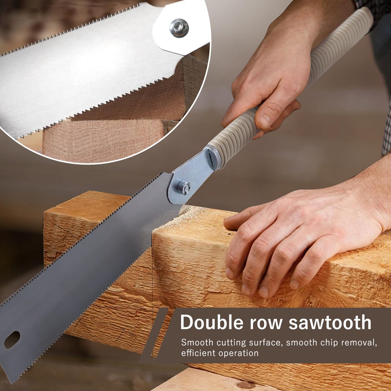 Holzarbeiten wie die Profis! Dieses 2-teilige Japansäge-Set besteht aus einer doppelseitigen Säge (600mm) und einer Rückensäge (525mm). Die Sägeblätter aus SK5-Kohlenstoffstahl sind mega scharf und bleiben es auch lange. \\n\\nDank dreiseitigem Schliff gleitest du praktisch durchs Holz - saubere Schnitte, kaum Kraftaufwand. Die Zähne sind dreistufig gehärtet für widerstandsarmes und leises Sägen. Selbst anspruchsvolle Schnitte meisterst du damit problemlos. \\n\\nDer Griff aus Massivholz mit PE-Rattan-Umwicklung liegt super in der Hand und rutscht nicht. Auch nach Stunden noch ermüdungsfrei arbeiten! Die Sägeblätter sind austauschbar - praktisch wenn mal was kaputt geht. \\n\\nPerfekt für Tischler, Heimwerker und alle, die gerne mit Holz arbeiten. Für Innen- und Außenbereich geeignet. Mit dabei: beide Sägen plus zwei Schraubenschlüssel für den Blattwechsel.