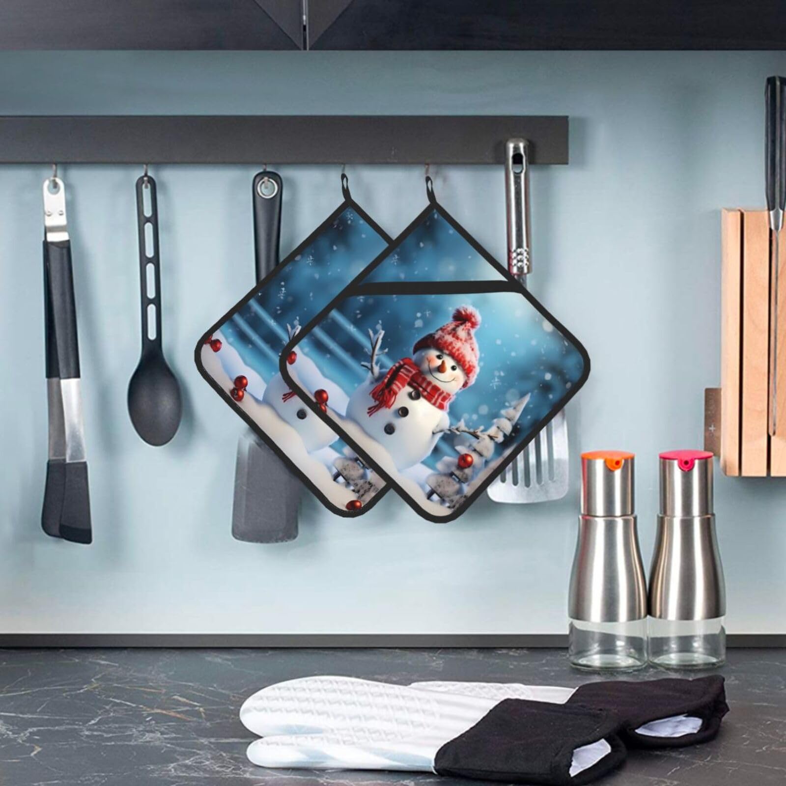 Hui, diese weihnachtlichen Topflappen mit Schneemann-Motiv bringen richtig Festtagsstimmung in deine Küche! Das 2-teilige Set ist nicht nur super niedlich, sondern auch mega praktisch. Aus wasserdichtem Polyestergewebe mit Isolierstoff schützen sie deine Hände sicher vor Hitze - ob beim Backen, Kochen, Grillen oder wenn du etwas aus dem Ofen holst. Eine der Topflappen hat sogar eine praktische Tasche, die andere nicht - für verschiedene Vorlieben. Die wasserdichte Beschichtung innen und außen macht sie super leicht zu reinigen. Mit den Aufhängeschlaufen kannst du sie platzsparend an der Wand oder einem Haken verstauen. Perfekt für Weihnachtsbäckerei, das Festtagsmenü oder einfach so in der kalten Jahreszeit. Machen sich auch super als Geschenk für backbegeisterte Freunde oder Familienmitglieder. Ob für Ofen, Mikrowelle, Toaster oder Fritteuse - diese Topflappen sind immer die richtige Wahl. Weihnachtliche Deko und praktischer Küchenhelfer in einem - was will man mehr?