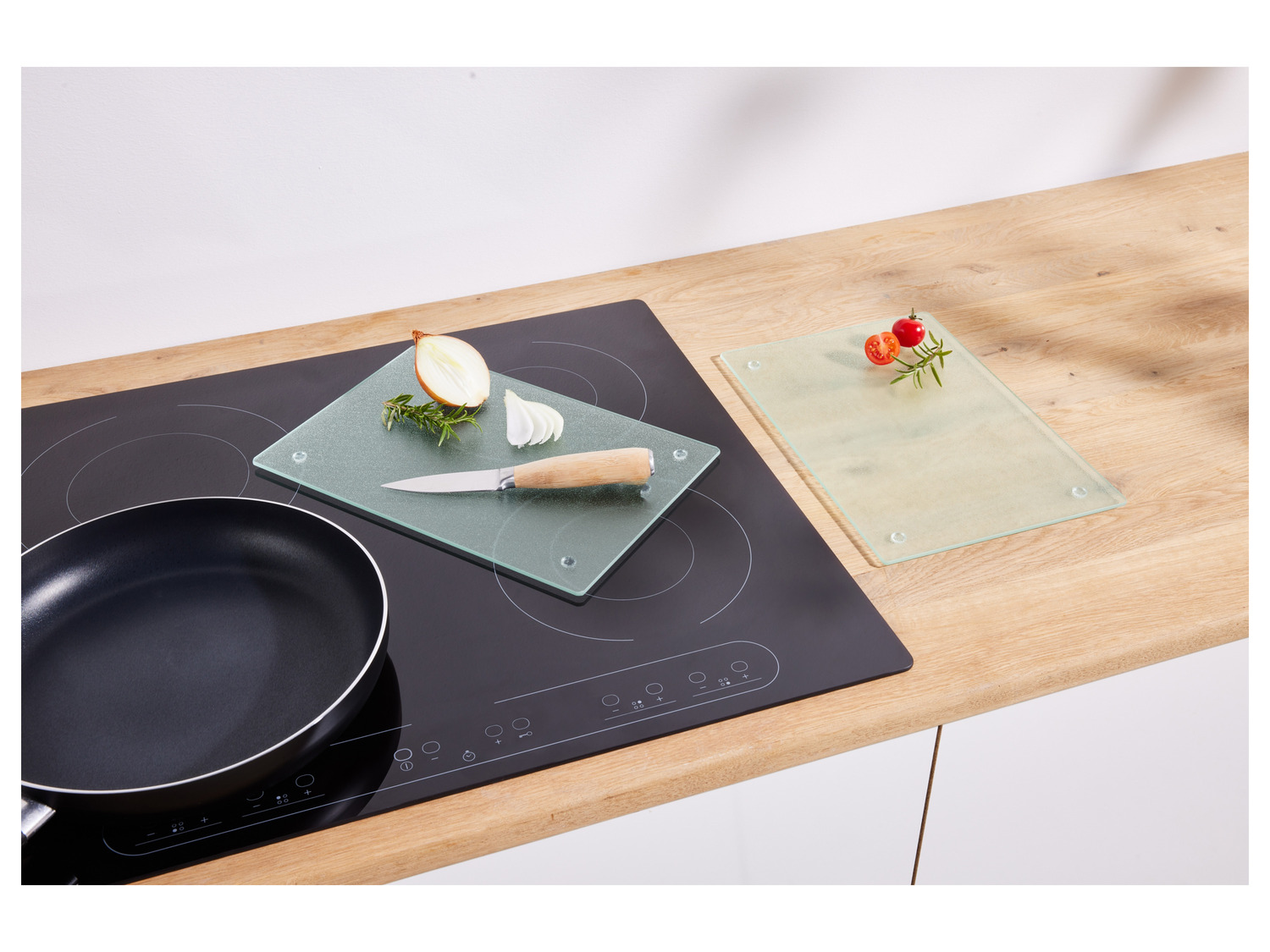 Wow, diese Glas-Schneidebretter sind echt praktisch! Hergestellt aus extra starkem, gehärtetem Glas - die halten was aus und sind bis 300°C hitzebeständig. Die rutschfeste Silikonkante sorgt dafür, dass das Brett nicht wegrutscht während du schneidest. Und die integrierte Saftrille fängt alle Flüssigkeiten auf, sodass deine Arbeitsplatte sauber bleibt. Perfekt als Schneideunterlage, aber auch super als Servierplatte für Käse oder kalte Platten. Dank des Aufhänkelochs kannst du sie platzsparend verstauen. Reinigen? Einfach in die Spülmaschine damit! Die glatte Oberfläche behält ihr funkelndes Aussehen und ist hygienischer als Holz- oder Kunststoffbretter. Das Set besteht aus zwei Größen - das große für Fleisch und große Mahlzeiten, das kleine für Obst und Gemüse. Ein echter Alleskönner für deine Küche!