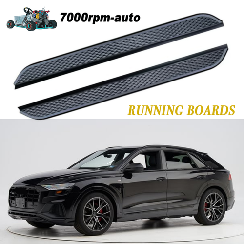 Mach deinen Audi Q8 noch stylischer und praktischer mit diesen coolen Trittbrettern! Das 2-teilige Set aus hochwertigem Aluminium und robustem ABS-Kunststoff passt perfekt für die Modelle 2020 bis 2023. Die Seitenstufen sehen nicht nur super aus, sondern machen das Ein- und Aussteigen auch viel bequemer - besonders für Kinder oder ältere Personen. Die Montage ist denkbar einfach: Die Trittbretter werden direkt in die Originallöcher gesteckt, ohne dass du schneiden oder bohren musst. Dennoch empfehlen wir für eine perfekte Passform die Installation durch einen Profi. Im Lieferumfang sind beide Trittbretter sowie alle notwendigen Schrauben und Muttern enthalten. Die Seitenstufen sind korrosionsbeständig und halten auch bei schlechtem Wetter problemlos mit. Ein Jahr Garantie gibt dir zusätzliche Sicherheit - falls doch mal was sein sollte, bieten wir kostenlosen Ersatz. Die Lieferung erfolgt schnell per Fedex, UPS oder TNT in sicherer Verpackung mit Luftpolsterfolie. Verpasse deinem Q8 den letzten Schliff und mehr Komfort mit diesen qualitativ hochwertigen Trittbrettern!