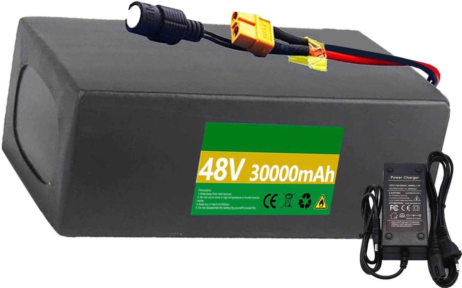 Mehr Power für dein E-Bike! Dieser 48V Lithium-Akku gibt deinem E-Bike mit 1000-2100W Motor den nötigen Schub. Verfügbar in verschiedenen Kapazitäten von 20Ah bis 45Ah - je nachdem, wie weit du fahren willst! 🚴‍♂️\n\nSuper sicher: Mit 30A BMS-Schutz vor Überladung, Tiefentladung und Kurzschluss. Und das robuste Gehäuse ist sogar wasserabweisend - perfekt für Outdoor-Abenteuer!\n\nEinfach zu montieren: Passt in die Gepäckträger-Aufnahme der meisten E-Bikes. Mit praktischem Ein/Aus-Schalter und Sicherheitsschlüssel. Inklusive Ladegerät natürlich!\n\nLäuft bei fast jedem Wetter: Von -20°C bis +60°C einsetzbar. Bis zu 1000 Ladezyklen halten ewig. Mach dein E-Bike fit für die nächste Tour - egal ob Stadt oder Gelände!