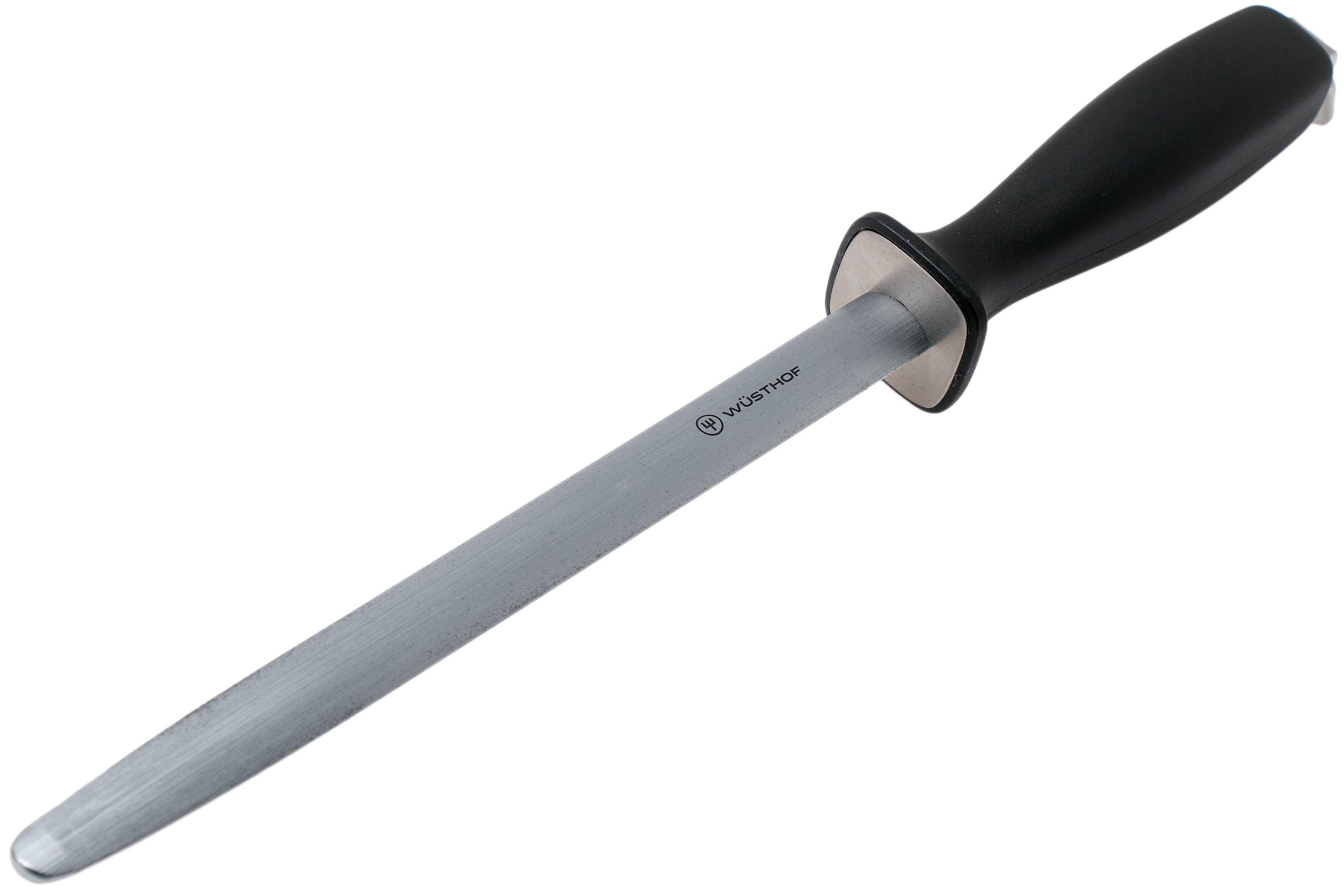 Hey, wer gute Messer hat, sollte auch gut pflegen! Der Marsvogel Wetzstahl aus Solingen ist genau das Richtige, um deine Küchenmesser immer scharf zu halten. Mit seiner ovalen Form liegt er besser in der Hand als runde Stähle, und die Chrom-Vanadium-Klinge mit 60 Rockwell Härte bringt selbst etwas stumpfere Klingen wieder auf Vordermann. Einfach die Messerschneide mit leichtem Druck von beiden Seiten über den Stahl ziehen - schon wird's wieder scharf! Der braune Holzgriff mit Knebel liegt super in der Hand, und der Metallring oben ist praktisch zum Aufhängen. Bei 20,5cm Stahllänge (gesamt 32,5cm) passt er auch zu größeren Messern. Wichtig: Nicht für Japanmesser oder extrem harte Klingen geeignet - die brauchen Spezialsteine. Aber für die meisten europäischen Küchenmesser ist dieser Wetzstahl perfekt. Einfach regelmäßig abziehen, bevor die Messer ganz stumpf werden - dann hast du lange Freude an scharfen Klingen. Solingen-Qualität zum fairen Preis!