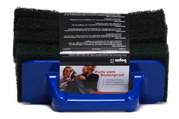 Professionelle Holzpflege für zu Hause! Dieses Set mit ergonomischem Handpadhalter (24x9,7cm) und 20 grünen Superpads (25x11,5cm) macht die Holzbodenpflege zum Kinderspiel. Die Pads eignen sich perfekt zum Einmassieren von Holzölen, zur Grundreinigung oder zur Laugenbehandlung. Ideal für Parkett, Dielen, Terrassen und Möbel. Der kompakte Halter erreicht auch Ecken und Kanten, die mit Maschinen schwer zugänglich sind. Ob zur Erstbehandlung, Nachpflege oder Reparatur - mit diesem Set behältst du deine Holzoberflächen in Top-Zustand. Achtung: Ölgetränkte Pads immer ausgebreitet trocknen lassen!