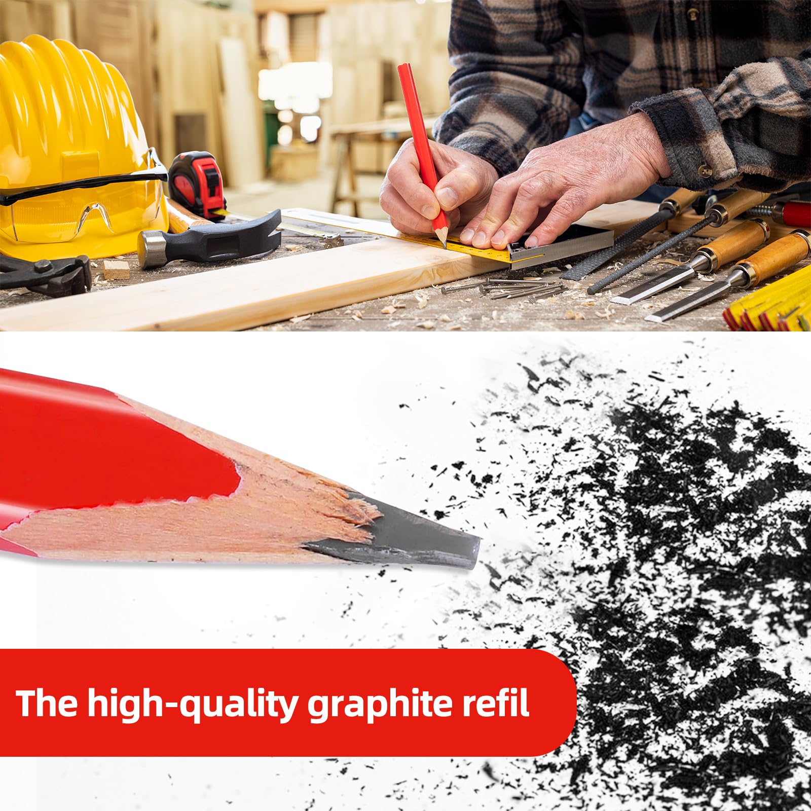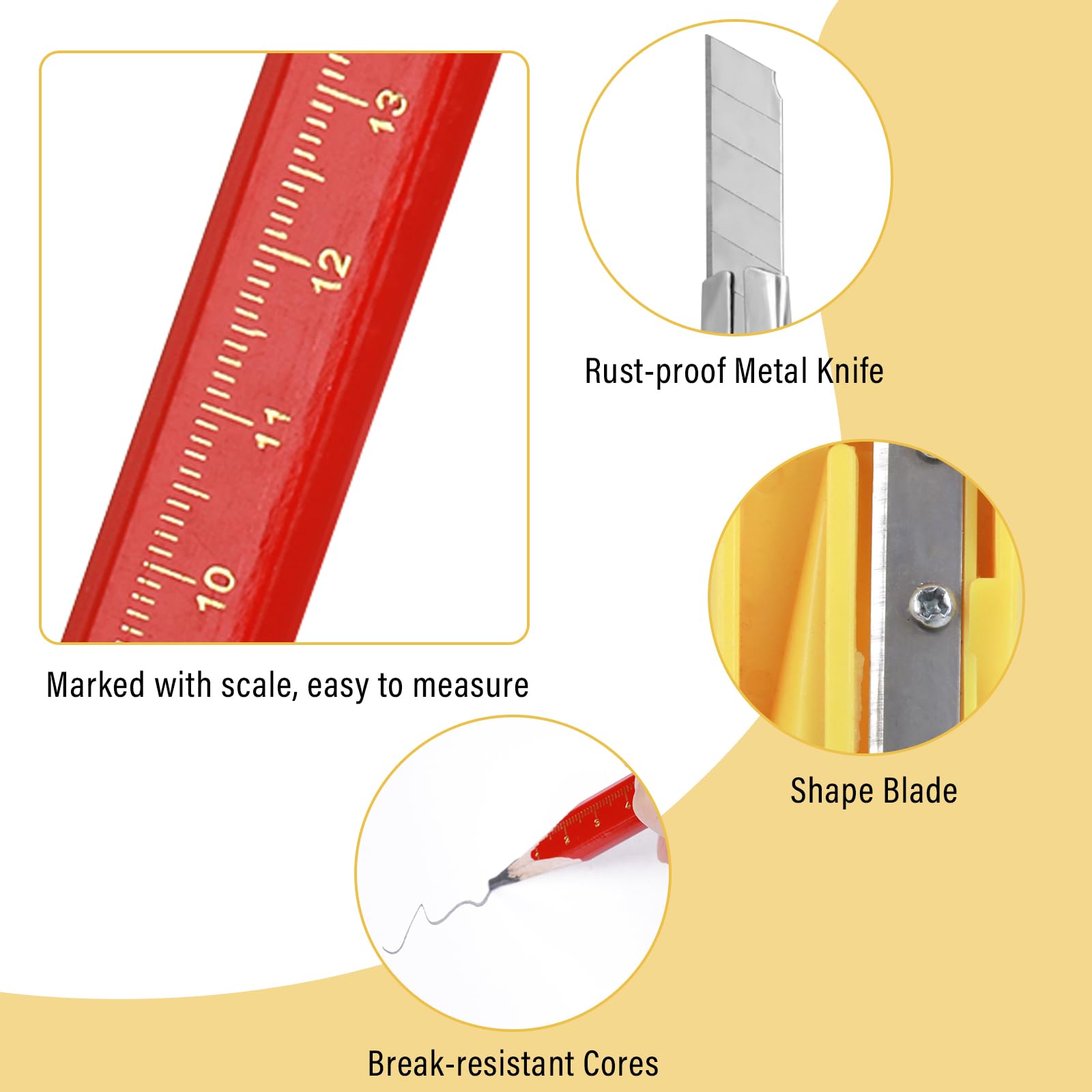 Das ultimative Set für Handwerker und Bastler! Diese 20 Zimmermannsbleistifte in auffälligem Rot sind perfekt für alle Markierarbeiten. Die ovale Form liegt super in der Hand und rollt nicht weg - praktisch oder? Jeder Bleistift ist 17,5 cm lang bei 1,5 cm Durchmesser und hinterlässt klare, scharfe Linien. Mit dabei: Ein praktischer Bleistiftspitzer und ein Schnitzmesser für alle Fälle. Das Graphit ist bruchfest und die Holzqualität top. Egal ob du auf Holz, Stein, Beton oder Gipskarton arbeitest - diese Stifte machen ihren Job perfekt. Der rote Lack sorgt dafür, dass du sie auch auf unübersichtlichen Baustellen schnell findest. Ein Must-Have für jeden, der professionell oder hobby-mäßig handwerklich arbeitet!