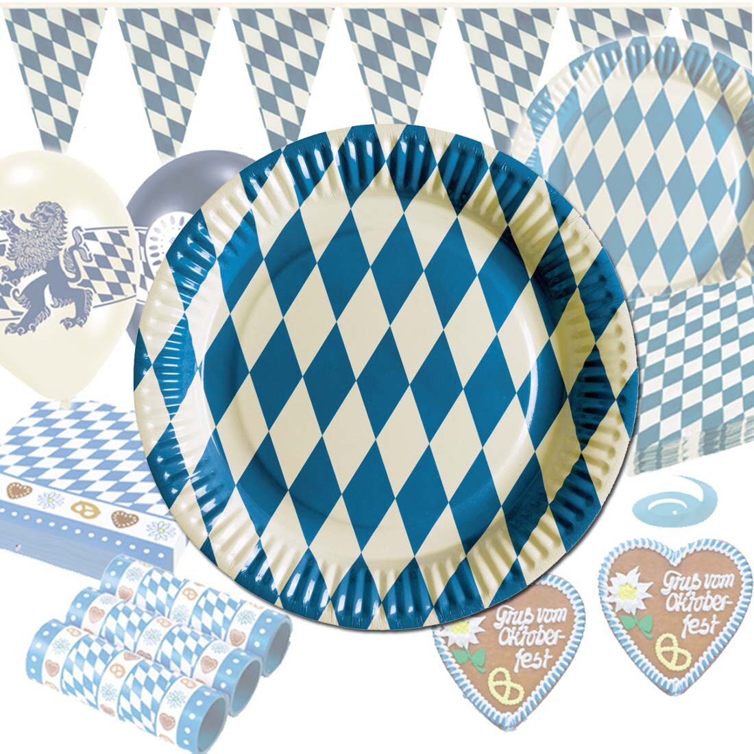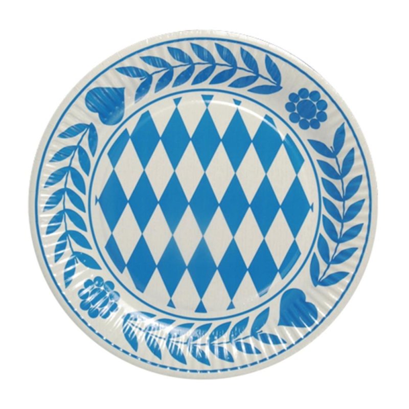 O'zapft is! Mit diesen Oktoberfest-Tellern wird jede Wiesn-Party zum Hit. Das 20-teilige Set in typisch bayerischen Blau-Weiß mit dem coolen Rautenmuster und den zwei anstoßenden Bierkrügen in der Mitte sieht einfach authentisch aus. Der goldgelbe Schaumrand rundet das Design perfekt ab. Mit 23cm Durchmesser haben die Teller genug Platz für deftige Speisen wie Würstl, Brezn oder Sauerkraut. Aus stabiler, lebensmittelechter Pappe - halten auch was aus! Nach der Feier einfach entsorgen, kein lästiges Spülen. Perfekt für Gartenpartys, Vereinsfeste oder die private Wiesn zu Hause. Kombinierbar mit passenden Oktoberfest-Bechern und Servietten für ein rundes Gesamtbild. Prost!