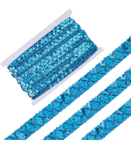 Bring Glamour in deine Bastelprojekte! Dieses wunderschöne blaue Paillettenband mit 20 Yards (18 Meter) Länge ist perfekt zum Verzieren von Kleidung, Accessoires oder Partydekoration. Die dicht aneinander gereihten Pailletten glitzern wunderschön und fangen jedes Licht ein. 2,5cm breit und leicht zu schneiden - einfach aufnähen oder kleben. Ideal für Hochzeitskleider, Stirnbänder, Tischdecken oder Geschenkverpackungen. Ob für Weihnachten, Geburtstage oder Karneval - dieses Band macht alles besonders festlich. Deine Kreativität kennt mit diesem glitzernden Band keine Grenzen!