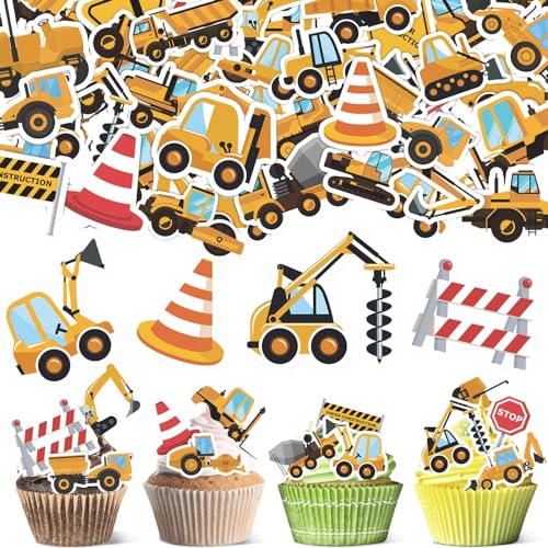 YICH Baustellen Spielzeug Set - 20-teilige Bagger Deko Für Kindergeburtstage