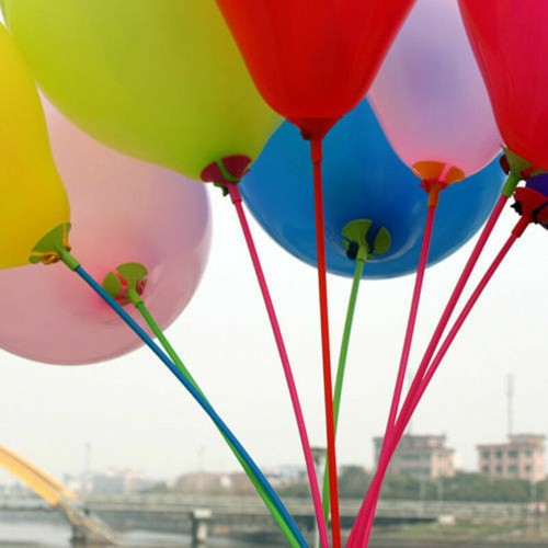 Party-Time! Mit diesen 200 Luftballon-Stäben wird jede Feier zum Hit. Jeder Stab ist 27 cm lang mit praktischem Ballonbecher (3,4 cm Durchmesser). Einfach den Ballon aufblasen, um den Becher binden und fertig ist die perfekte Dekoration! Aus stabilem Kunststoff, bunt gemischt und wiederverwendbar. Perfekt für Geburtstage, Hochzeiten, Kinderfeste oder Firmenevents. Die Ballons stehen sicher und fallen nicht um. Damit sparst du dir lästiges Kleben und Basteln. Einfach in die Erde stecken oder in Vasen stellen - und schon leuchtet deine Party in allen Farben! Party-Deko war noch nie so einfach!