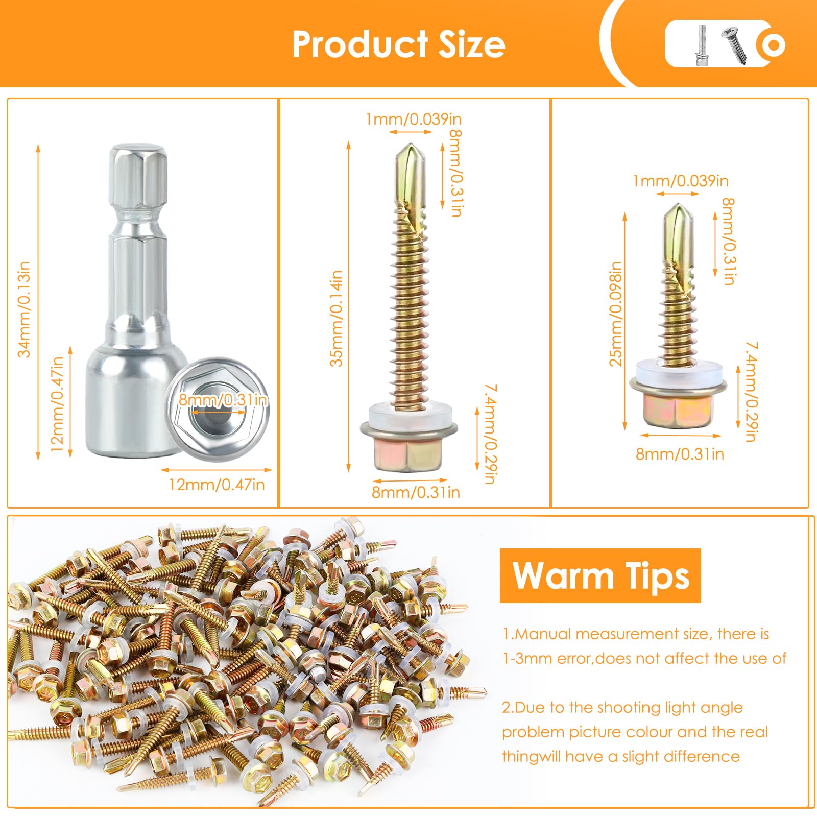 Alles dabei für deine Bauprojekte! Dieses Set mit 200 Trapezblechschrauben in drei Größen (16mm, 19mm, 35mm) ist perfekt für Heimwerker und Profis. Die M4,8 Schrauben sind selbstschneidend und sparen dir das Vor bohren.