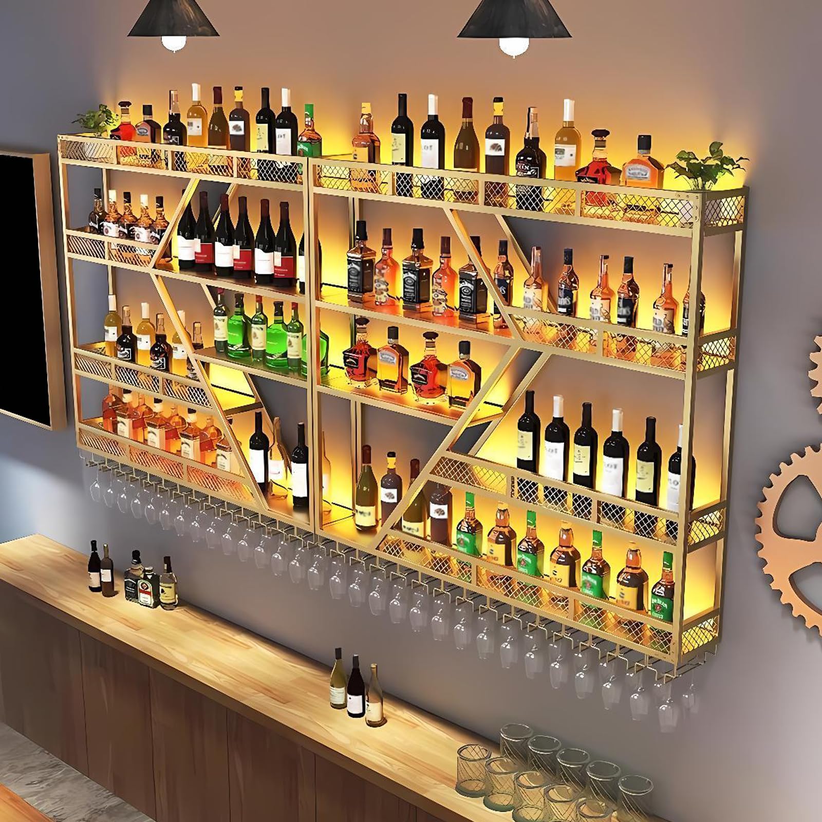 Präsentiere deine Weinsammlung stylevoll! Dieses 3-stöckige Weinregal in Gold (auch in Schwarz erhältlich) ist 200cm lang und macht richtig was her. Aus robustem Eisen gefertigt, trägt es problemlos deine schwersten Flaschen. Das coole: Integrierte Glas-Halter für deine Weingläser (bis 9,5cm Durchmesser) und praktische Haken für sonstiges Zubehör. Die rautenförmigen Fächer sehen nicht nur cool aus, sie bieten auch Stabilität. Perfekt für Wohnzimmer, Küche oder deine Hausbar. Montage ist super einfach - in 10 Minuten an der Wand befestigt und schon kannst du deine Schätze präsentieren. Ein absoluter Hingucker für Weinliebhaber!