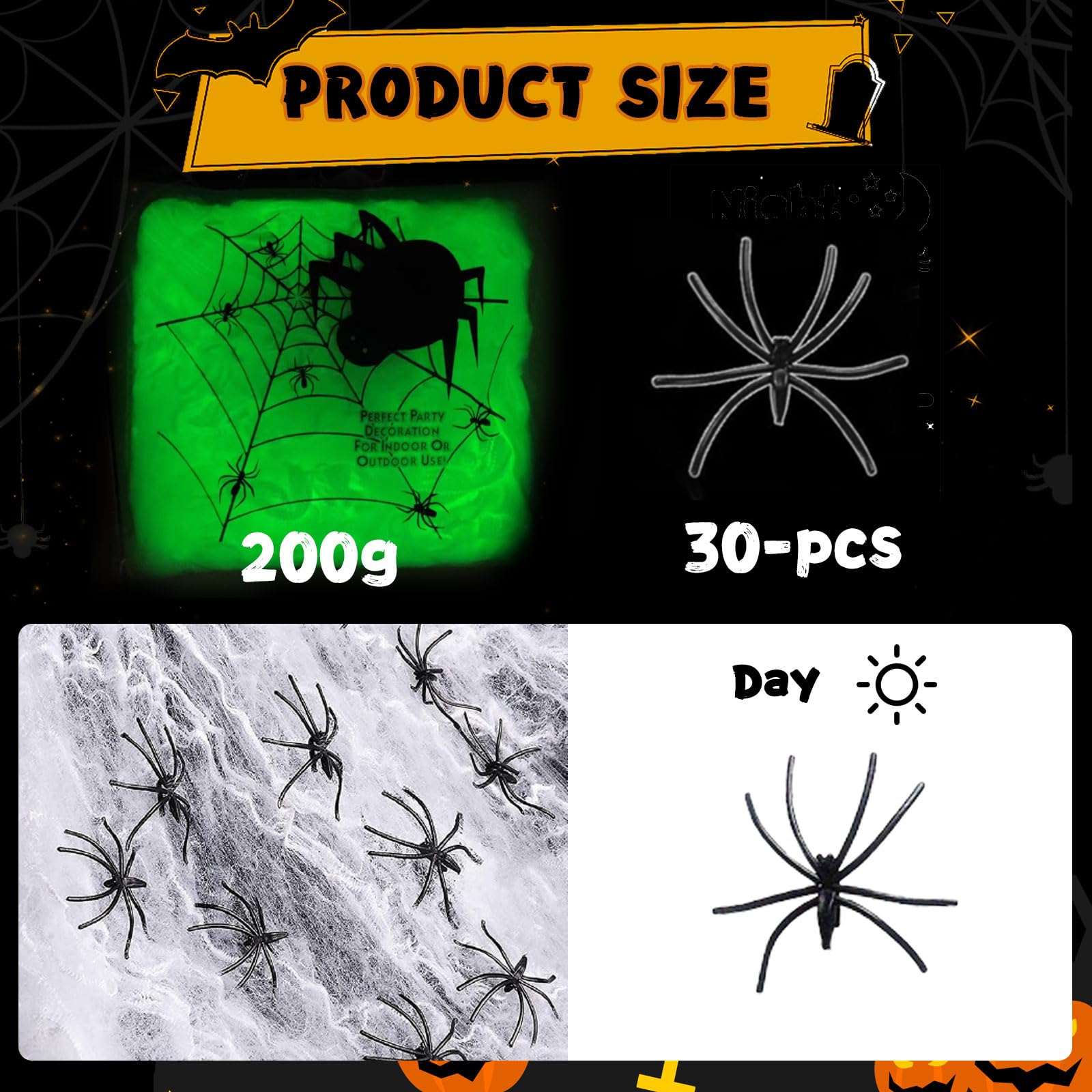 Boooo! Mach dein Haus zur Gruselburg mit diesem mega-coolen Spinnennetz-Set! 200g leuchtende Spinnweben und 30 gruselige Spinnen warten darauf, dein Zuhause in eine Horror-Kulisse zu verwandeln. Das Beste: Die Netze leuchten im Dunkeln! Einfach tagsüber ans Licht stellen, um Energie zu tanken, und nachts strahlen sie grünlich - total unheimlich! Die dehnbaren Netze decken locker 100m² ab und fühlen sich super echt an. Einfach über Möbel, Türen, Fenster oder Bäume ziehen und die Spinnen dazu platzieren. Perfekt für Halloween-Partys, Grusel-Events oder einfach um die Nachbarn zu erschrecken! Aus weichen Kunstfasern und wiederverwendbar - jedes Jahr wieder gruselig. Damit wird deine Halloween-Deko garantiert der Hit in der ganzen Straße!