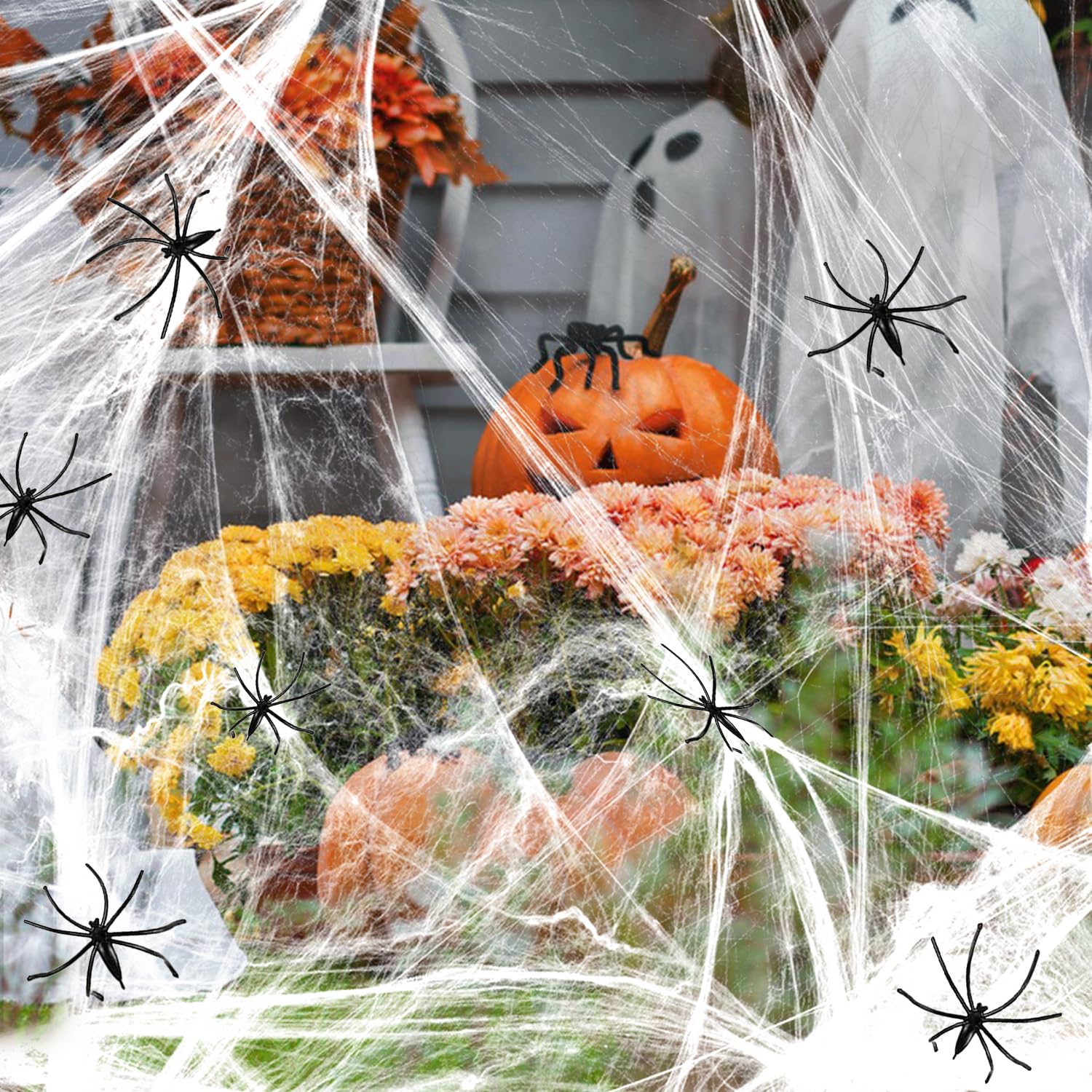 Nuangoo Halloween Deko Set - 200g Spinnweben & 50 Spinnen