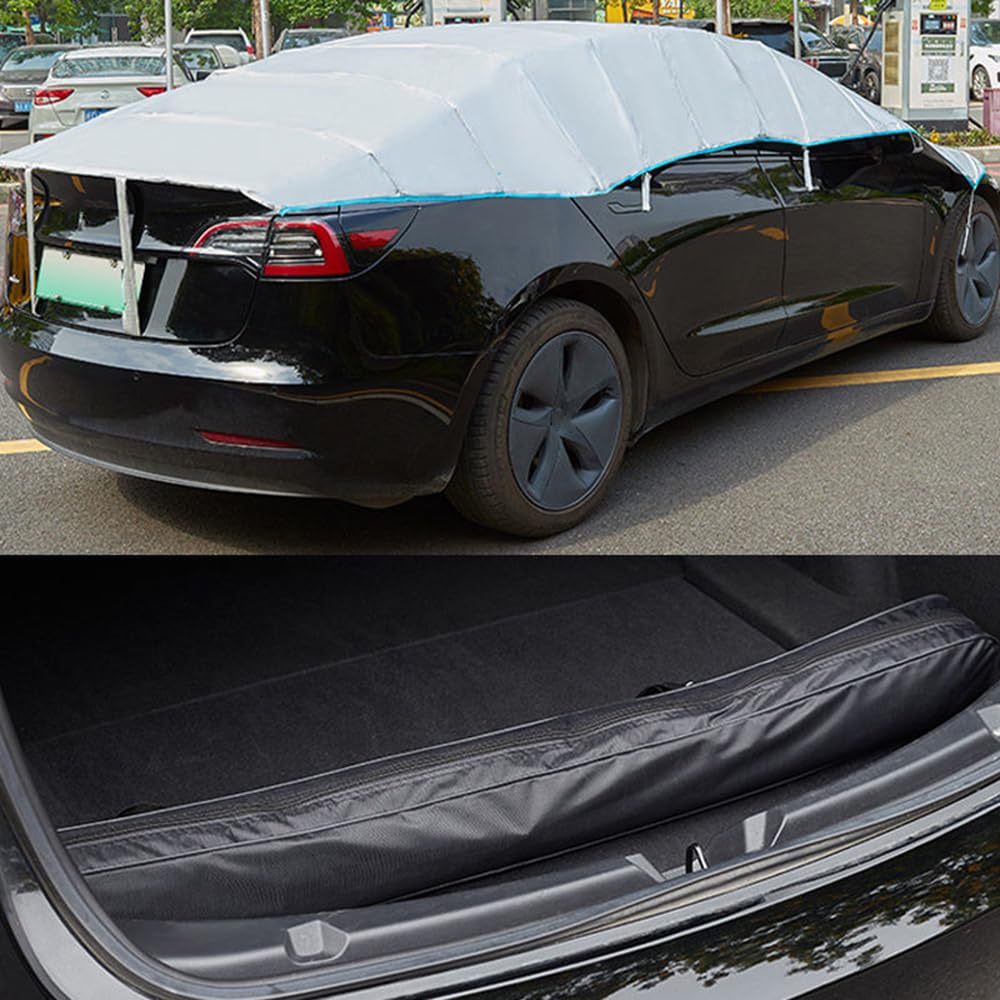 Dein Skoda Karoq (Baujahr 2017-2023) verdient den besten Schutz! Diese halbe Autoabdeckung ist wie eine mobile Garage für dein Auto - perfekt wenn du keinen Stellplatz hast oder dein Auto oft draußen steht. Das hochwertige Polyester-Material schützt zuverlässig vor Sonne, Regen, Staub, Vogelkot und Baumharz. Im Sommer verhindert es, dass sich dein Auto innen aufheizt, im Winter sparst du dir das lästige Eiskratzen. Die Abdeckung ist atmungsaktiv, aber dennoch wasserabweisend - bei normalem Regen bleibt alles trocken, nur bei extremem Dauerregen könnte minimal Wasser durchdringen. Reflektierende Elemente an den Seitenspiegeln sorgen für mehr Sicherheit nachts. Die verstärkten Nähte und robusten Gurte verhindern, dass dir die Abdeckung bei Wind weggeweht wird. Und das Beste: Sie ist super leicht und du kannst sie ganz alleine an- und abbringen! Inklusive praktischer Aufbewahrungstasche für platzsparende Lagerung. Weniger Autowäschen, weniger Ärger mit Verschmutzungen - diese Abdeckung spart dir Zeit und Geld. Dein Auto bleibt länger schön und du hast weniger Arbeit. Einfacher kann Autopflege kaum sein!