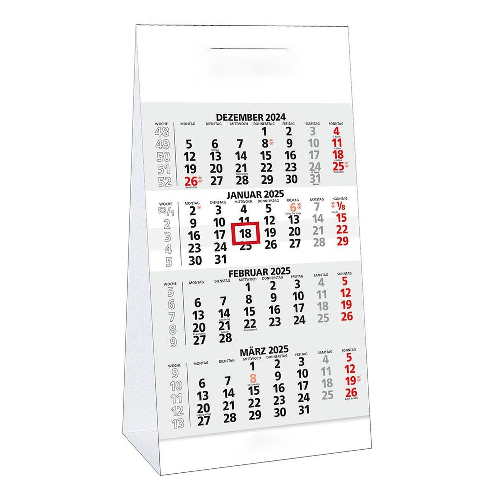 Organisation war noch nie so schön! Dieser weiße Stehkalender deckt satte 18 Monate ab - von Juli 2025 bis Dezember 2026. Mit den Maßen 19x16x8cm ist er kompakt genug für jeden Schreibtisch, aber groß genug für gute Lesbarkeit. Aus hochwertigem, dickem Papier - keine Tinte drückt durch! Die doppelte Spiralbindung macht das Umblättern zum Kinderspiel. Besondere Features: Feiertags-Markierungen, Wochenzähler und Monatsübersichten. Die großen Notizfelder geben Platz für alle wichtigen Termine und Erinnerungen. Der stabile Kartonständer hält sicher und kippt nicht um. In elegantem Weiß passt er zu jedem Arbeitsplatz oder Wohnbereich. Perfekt für Büro, Homeoffice, Schule oder Zuhause. Macht nicht nur organisiert, sondern sieht auch noch stylisch aus. Ein Kalender, der wirklich mitdenkt und das Planen zum Vergnügen macht. Einfach aufstellen und das Jahr perfekt im Blick behalten!