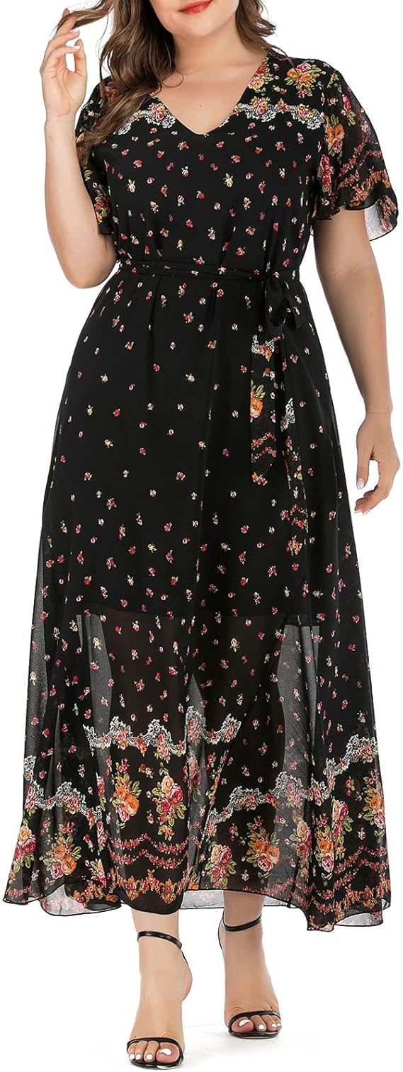 Dieses Sommerkleid ist einfach traumhaft schön! Mit zartem Blumendruck im Wrap-Design und tiefem V-Ausschnitt der deine Figur perfekt in Szene setzt. Aus leichtem Polyester der angenehm kühl und atmungsaktiv ist - perfekt für heiße Sommertage. Die A-Linie schmeichelt jeder Figur und die lange Midi-Länge macht es richtig elegant. Mit niedlichen Rüschen an den Ärmeln für den extra Feminine-Touch. Der Sicherheitsknopf am V-Ausschnitt sorgt dafür dass alles an Ort und Stelle bleibt. Super vielseitig: Tagsüber mit Sneakers lässig, abends mit Sandalen und Schmuck richtig stylisch. Perfekt für Urlaub, Strand, Dates, Hochzeiten oder einfach für den Alltag. Du wirst dich darin einfach wohlfühlen und toll aussehen!