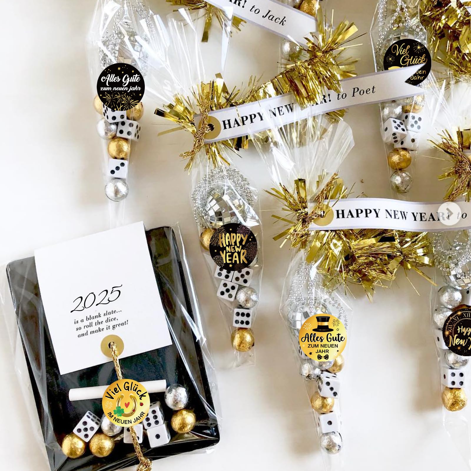 Mach deine Silvester-Party zum unvergesslichen Event mit diesen funkelnden Perlenketten! Das Set enthält 6 Ketten - je 2x in Gold, Schwarz und Silber. So hast du genug für dich und deine Gäste. Aus hochwertigem Kunststoff gefertigt, sind die Ketten leicht, aber robust und wiederverwendbar. Das 'Happy New Year' Design ist dezent aber effektvoll und verleiht jedem Outfit einen festlichen Glanz. Perfekt für Neujahrsessen, Partys, Bühnenauftritte oder einfach zum Feiern mit Freunden und Familie. Die glatten, polierten Perlen liegen angenehm auf der Haut. Einfach umlegen und schon strahlst du wie der Silvester-Stern! Super als Geschenk oder für gemeinsame Fotos zur Erinnerung. Wichtig: Kinder sollten die Ketten nur unter Aufsicht tragen. Starte glamourös ins neue Jahr!