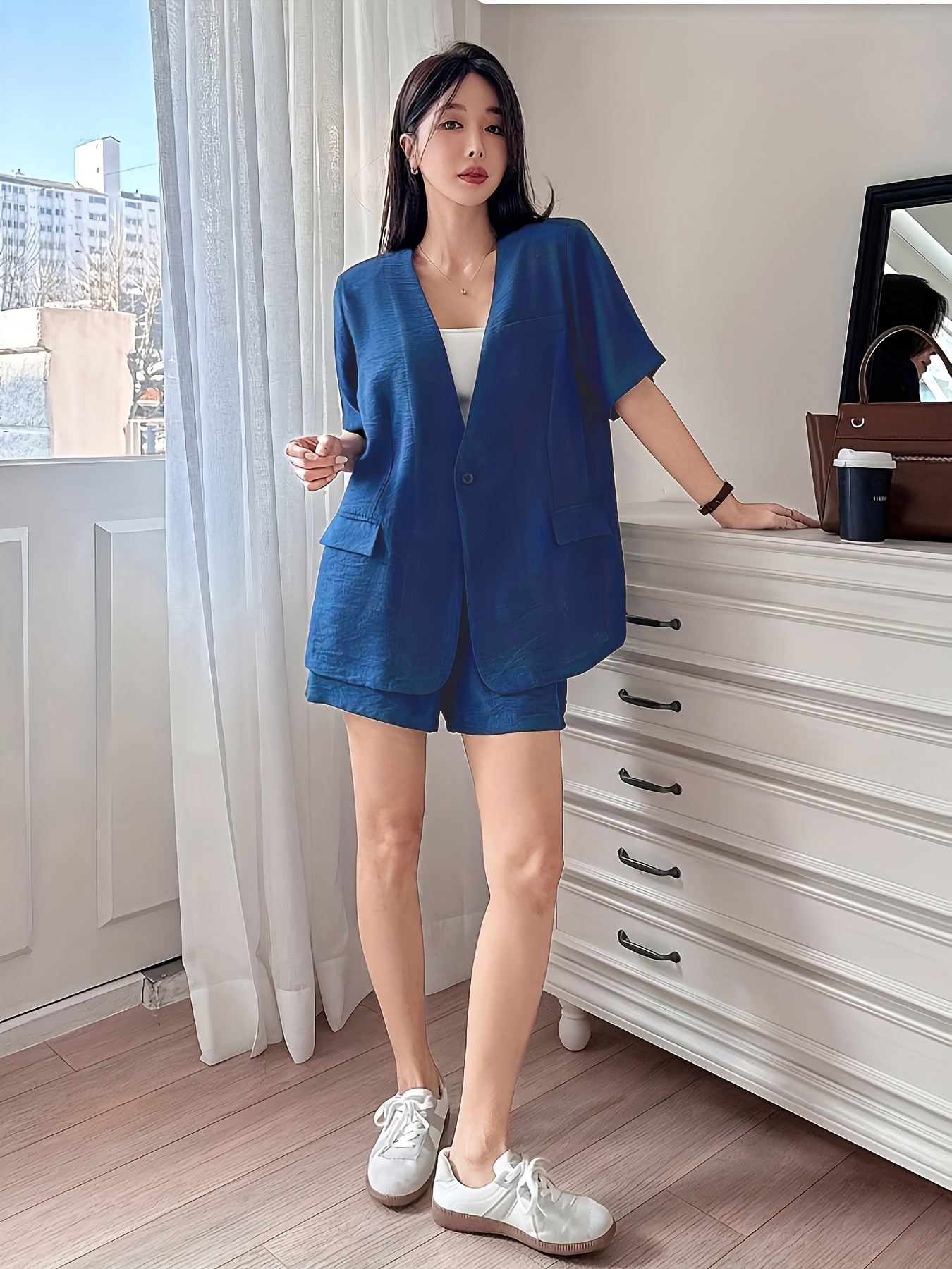 Dieser trendige Zweiteiler ist dein neues Lieblingsoutfit für den Sommer! Das lockere Oversize-Shirt kombiniert mit praktischen Shorts mit hohem Bund - einfach lässig und super bequem. Aus weicher Polyester-Baumwoll-Mischung, atmungsaktiv und pflegeleicht. Die Shorts haben praktische Taschen für deine kleinen Schätze. In den Größen S-4XL für jede Figur perfekt. Mit 420g Gesamtgewicht leicht und ideal für warme Tage. Ob zum Shoppen, für Dates oder einfach nur zum Relaxen zu Hause - dieses Set geht immer! Kombinierbar mit Sneakern für lässigen Look oder mit High Heels für einen eleganten Touch. Bügelfrei und maschinenwaschbar - perfekt für die moderne, vielbeschäftigte Frau!