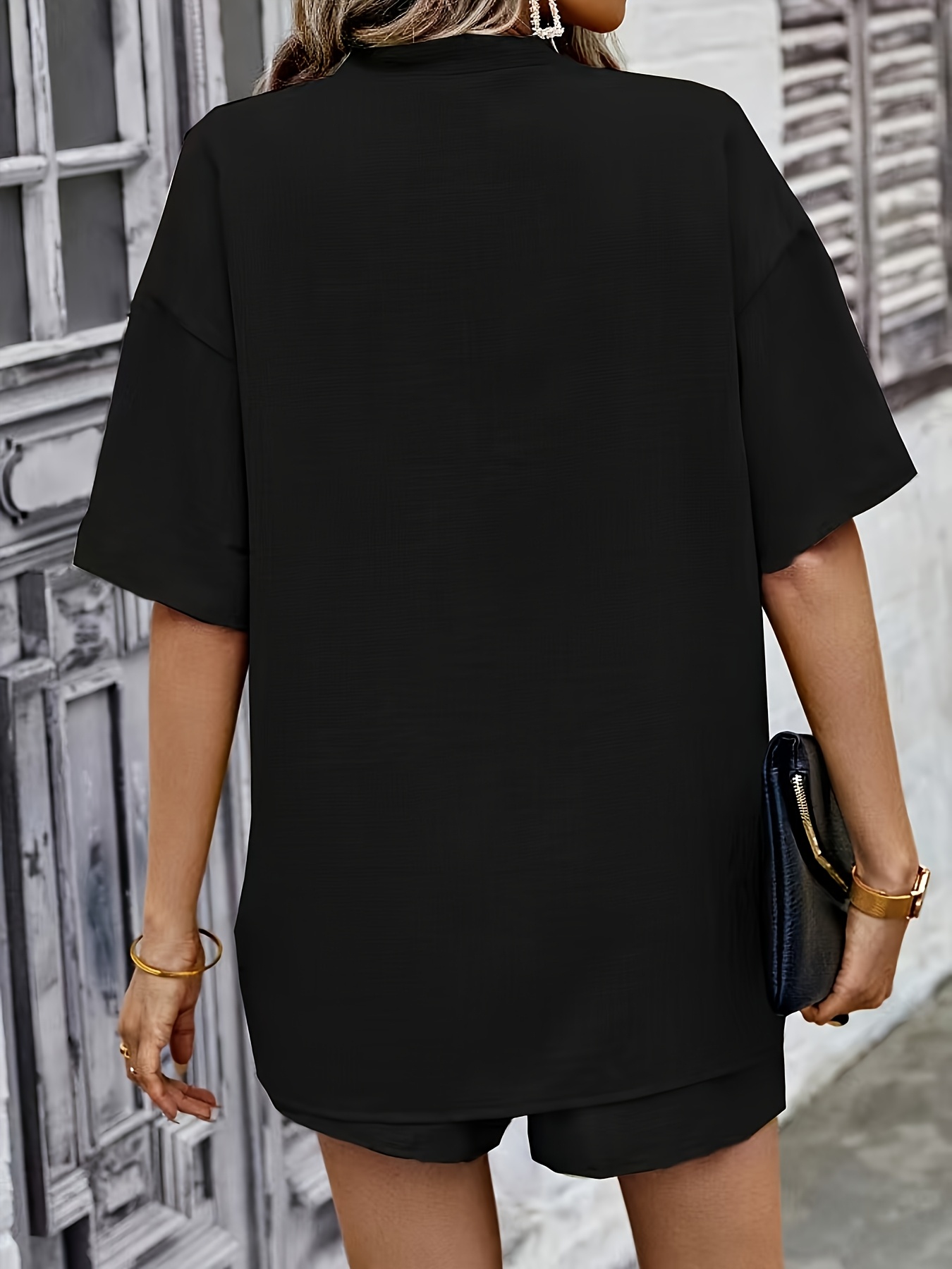 • Damen Zweiteiler Sommer 2025 - Oversize Shirt Mit Shorts Lässiges Set Mit Tasche