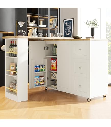 Träumst du von einer praktischen Kücheninsel oder einem stylischen Bartisch? Dieser ausziehbare Tisch von Lahoomu ist ein echter Allrounder! Mit seiner variablen Länge von 138-204 cm passt er sich perfekt deinem Raum an. Das absolute Highlight: Die 360° Drehfunktion - so kannst du den Tisch von allen Seiten nutzen, super praktisch bei Gesellschaft! Die weiße MDF-Platte sieht nicht nur edel aus, sondern ist auch robust und pflegeleicht. Mit 50 kg Eigengewicht und einer Traglast von 60 kg ist der Tisch absolut stabil. Die durchsichtigen Acryl-Türen und stylischen Aluminium-Griffe geben dem Ganzen einen modernen Touch. Praktische Stauräume wie eine große Schublade und seitliche Regale bieten Platz für Gläser, Geschirr oder Bürobedarf. Ob als Esstisch, Home-Bar oder Schreibtisch - dieser Tisch macht einfach alles mit! Variable Länge für flexible Nutzung • 360° Drehmechanismus • Robuste MDF-Platten • Elegante Acryl-Türen • Praktische Stauräume • Einfache Montage • Perfekt für kleine Wohnungen • Modernes Design in Weiß • Vielseitig einsetzbar • Ideal für Home-Office