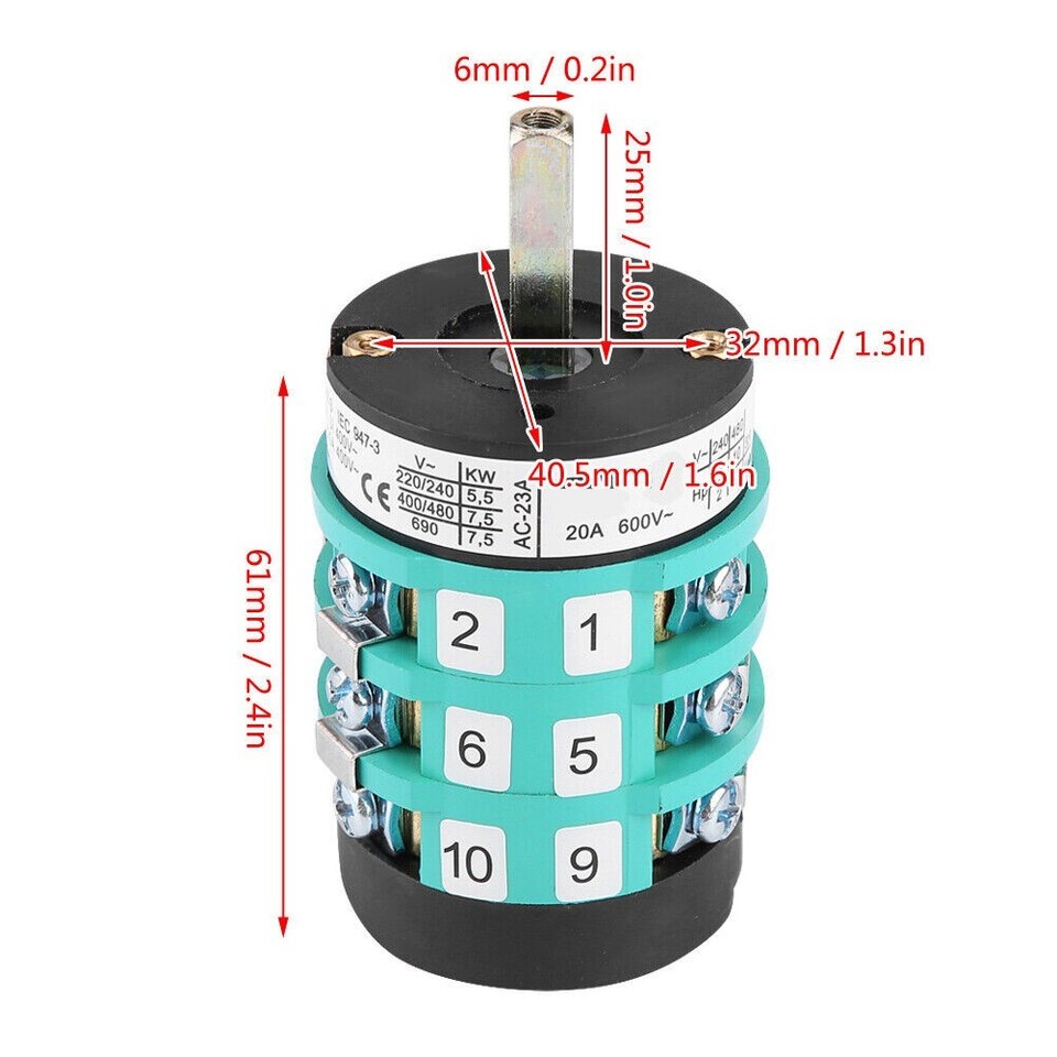 Für alle, die mit Reifenwechselmaschinen arbeiten! Dieser robuste Vorwärts/Rückwärts-Schalter ist genau das, was du brauchst. Mit einer Stromstärke von 20A und einer Spannung von 220V (einphasig) bzw. 380V (dreiphasig) ist er für die meisten Reifenwechsler geeignet. Die Abmessungen von 61x41 mm sind kompakt und die Stablänge von 25 mm bietet guten Halt. Aus einer Kombination von Kunststoff und Metall gefertigt, ist dieser Schalter extrem langlebig und hält auch bei intensivem Gebrauch stand. Die Installation ist denkbar einfach - der Schalter wird direkt in den Reifenwechsler eingebaut und steuert den Maschinenmotor. Es handelt sich um einen Handschalter ohne automatische Rückstellung, also bleibst du immer in Kontrolle. Wichtig: Auch wenn die Montage einfach erscheint, empfehlen wir eine professionelle Installation für maximale Sicherheit. Der Schraubenlochabstand beträgt 32 mm - bitte vor dem Kauf überprüfen, ob dies zu deinem Gerät passt. Ein zuverlässiges Teil für die Werkstatt oder den professionellen Einsatz!