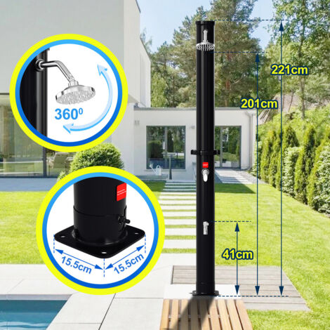 Erfrischende Duschen ganz ohne Stromkosten! Diese GreenYard Solardusche mit 20 Liter Tank nutzt die Sonnenkraft, um das Wasser zu erwärmen. Perfekt für Garten, Terrasse oder Poolbereich. Mit 217cm Höhe und 11,8cm Durchmesser ist sie richtig stabil. Das coole Feature: Sie hat sowohl eine Handbrause als auch eine Fußdusche - total vielseitig! Der Brausehalter ist höhenverstellbar, damit jeder bequem duschen kann. Aus verchromtem ABS-Kunststoff und mit PA66-Sockel für festen Stand. Einfach montieren und sommerlichen Duschspaß genießen. Umweltfreundlich, praktisch und sieht auch noch gut aus - was will man mehr?