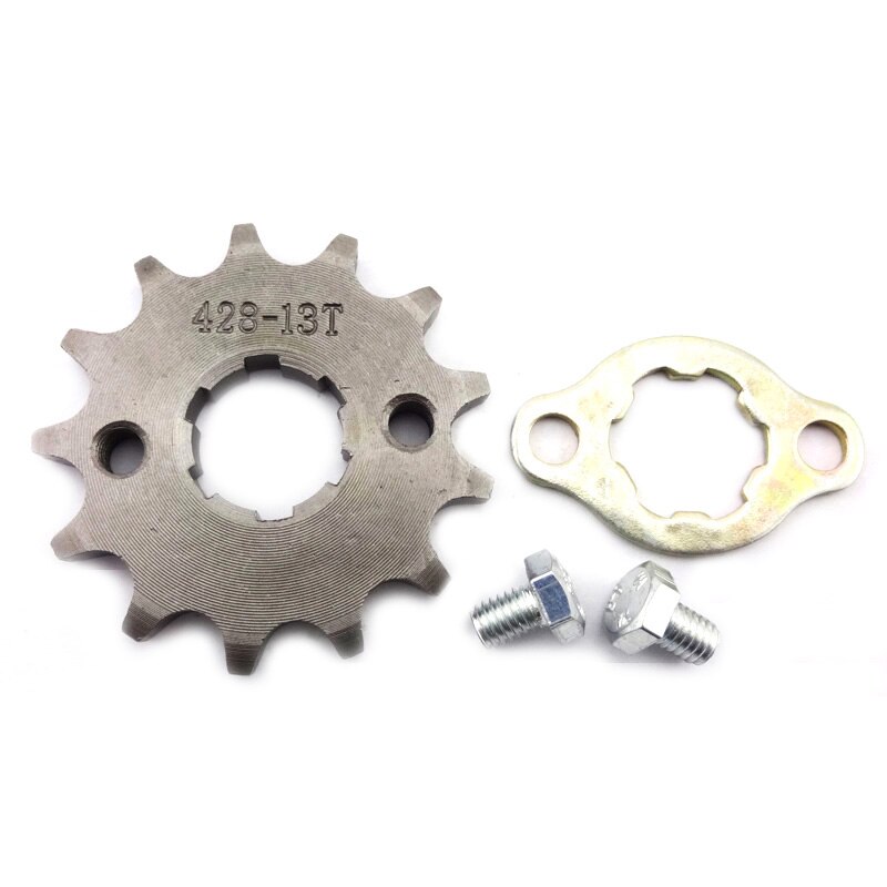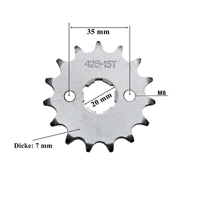 Hey Dirtbike-Fans! Dieses Kettenrad bringt deine Maschine wieder auf Trab. 428er Kette, 15 Zähne, 20mm Befestigungsloch - perfekt für 50ccm, 70ccm, 90ccm, 110ccm und 125ccm Dirt Bikes, Mini Bikes und ATVs. Aus robustem Stahl in Titan-Optik gefertigt - hält auch bei hartem Einsatz! Auge-zu-Auge Mittellänge: 34mm, Zahnrad-Innendurchmesser: 17,5mm. Einfach zu montieren - einfach das alte Ritzel ab, neues drauf und schon geht's wieder rund! Im Lieferumfang: 1x vorderes Kettenrad + 4x Montageschrauben. Wichtig: Vorher genau prüfen, ob die Größe zu deinem Bike passt. 428 = Kettenmodell, 15T = Zähnezahl, 20mm = Lochgröße. Mach dein Bike fit für die nächste Offroad-Tour!