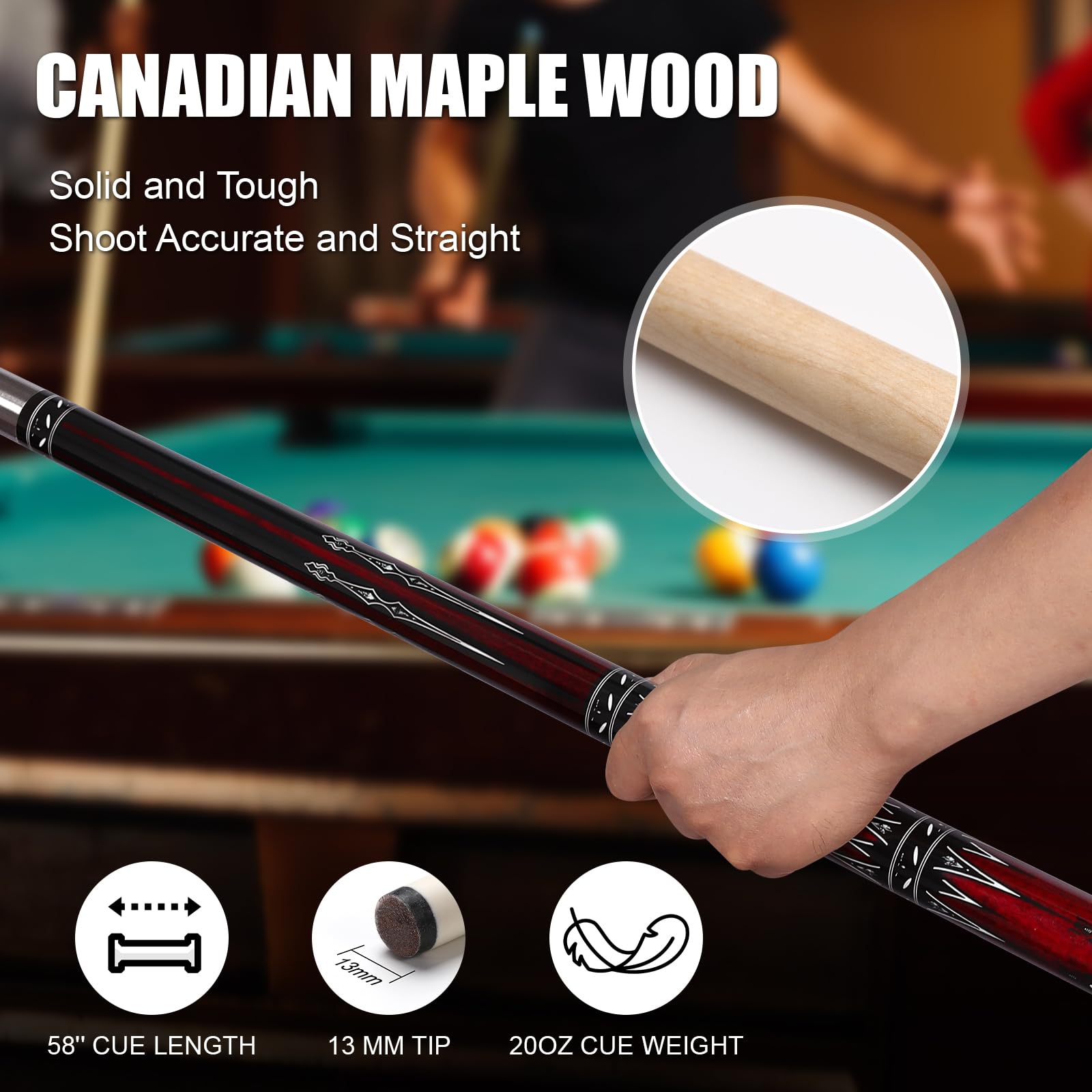 Billard-Spieler, dieses ASMPCUE Queue ist ein Traum! 58 Zoll lang, 20 Unzen schwer, mit 13mm Lederspitze. Aus kanadischem Ahornholz - super gerade und extrem langlebig. 1/2-teilige Konstruktion, einfach zusammenschrauben und losspielen. Sieht edel aus mit klarem Lack, schützt vor Feuchtigkeit. Im Lieferumfang: eine stylische PU-Leder Tasche mit Schwammpolsterung zum Schutz. Außenfächer für Kreide, Handschuhe und Zubehör. Verstellbare Träger für bequemen Transport. Perfekt für die Bar, Billardhalle oder zu Hause. Als Geschenk für Billard-Fans einfach ideal. Damit spielst du wie ein Profi und machst garantiert eine gute Figur am Tisch. Einfach bestellen und den nächsten Game-Abend genießen!
