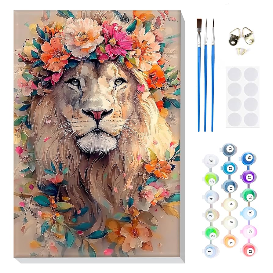 Hallo Kunst-Begeisterte! 🎨 Dieses Löwe Malen nach Zahlen Set bringt den Künstler in dir zum Vorschein! Egal ob du Anfänger oder Profi bist - mit diesem komplett Set wird dein Wohnzimmer im Handumdrehen zur Galerie.\n\nWas alles im Lieferumfang enthalten ist:\n• Vorgespannte Leinwand 20x30cm mit Holzrahmen\n• 3 verschiedene Pinsel für alle Mal-Techniken\n• Acrylfarben in nummerierten Tönen\n• Aufhänge-Set mit Klebepunkten und Haken\n• Klare Zahlen und Linien für einfaches Malen\n\nSo einfach geht's:\n1. Such die Nummer auf der Leinwand\n2. Nimm die passende Farbe\n3. Male die Flächen aus\n4. Fertig ist dein Meisterwerk!\n\nDie Acrylfarben sind:\n• Gesund und ungiftig\n• Geruchlos\n• Leicht zu korrigieren\n• Perfekt für Kinder und Erwachsene\n\nDas Beste daran? Du musst kein Picasso sein! Die vorgezeichneten Linien führen dich sicher zum Erfolg. Perfekt zum Abschalten nach einem stressigen Tag oder für gemütliche Bastelabende mit der Familie.\n\nIdeal für:\n• Wohnzimmer-Deko\n• Schlafzimmer-Gestaltung\n• Büro-Verschönerung\n• Geschenke für Liebste\n• Kreative Therapie\n\nDas fertige Bild sieht so professionell aus, dass jeder denkt, du hättest es frei Hand gemalt! Die Löwen-Motiv ist besonders imposant und wird zum echten Hingucker in deinen vier Wänden.\n\nTauche ein in die Welt der Malerei - stressfrei und mit garantiertem Erfolgserlebnis! Dein persönliches Meisterwerk wartet darauf, erschaffen zu werden! 🦁✨