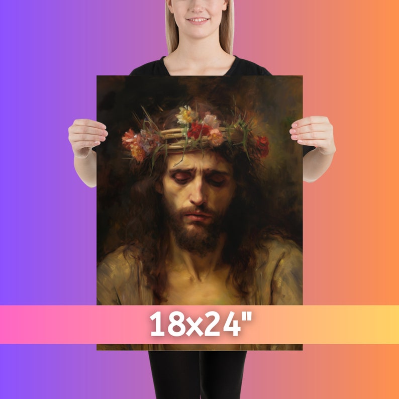 Auf der Suche nach einer besonderen Wanddekoration mit tieferer Bedeutung? Dieses christliche Poster mit Jesus am Kreuz ist ein wunderschönes Statement für dein Zuhause. Im handlichen 20x30cm Format passt es perfekt in jedes Schlafzimmer, Wohnzimmer oder Büro. Hergestellt auf hochwertiger Leinwand mit professionellem Tintenstrahldruck für ein gestochen scharfes, detailreiches Bild. Jedes Poster wird mit Liebe von Hand gefertigt und inspiziert - da steckt echte Handarbeit drin! Im Gegensatz zu normalen Papierpostern ist die Leinwand-Qualität deutlich langlebiger und widerstandsfähiger. Das moderne Design ist ein echter Hingucker und verleiht deinem Raum eine besondere Leichtigkeit und Schönheit. Perfekt als Geschenk für Taufen, Kommunionen oder einfach für alle, die ihren Glauben auch in der Einrichtung ausdrücken wollen. Eine wunderbare Möglichkeit, deine Wertschätzung für den christlichen Glauben zu zeigen!