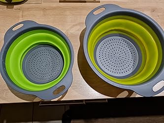 Genial praktisch für kleine Küchen! Dieser faltbare Sieb aus Silikon ist dein neuer Küchenhelfer. Mit 21,5 cm Durchmesser perfekt für Nudeln, Reis, Gemüse und mehr. Nach Gebrauch einfach zusammenfalten und platzsparend in der Schublade verstauen - kein Platzproblem mehr! Das mikroperforierte Design lässt Wasser super ablaufen, aber nichts Wertvolles durchgehen. Aus lebensmittelechtem Silikon, spülmaschinenfest und einfach zu reinigen. Viel leichter als Metall-Siebe und knickt nicht ein. Perfekt für Camping, Wohnmobile oder einfach wenn du wenig Stauraum hast. Einfach aufklappen, benutzen, zusammenfalten - so einfach kann Küchenarbeit sein! Sieht auch noch gut aus in grau.