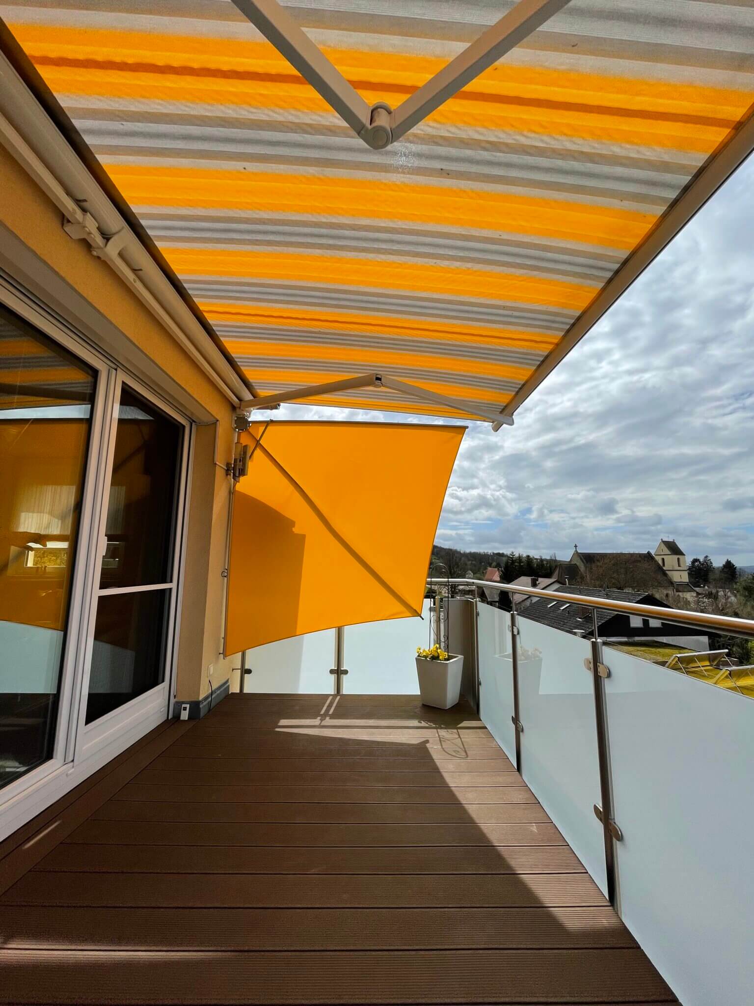 Wow, diese Terrassenmarkise ist ein echter Allrounder für deinen Balkon, Terrasse oder Garten! Mit 210x210 cm Größe spendet sie ordentlich Schatten und sorgt für Privatsphäre. Der Rahmen aus pulverbeschichtetem Stahl ist super stabil und hält auch bei Wind stand. Die Bespannung aus Polyester ist wasser- und schmutzabweisend sowie UV-beständig - da macht dir schlechtes Wetter nichts aus. Das klappbare Design ist genial: Wenn du die Markise nicht brauchst, faltest du sie einfach zusammen und sparst Platz. Die Wandhalterung ermöglicht eine einfache Montage - kein großes Gebohre, und du hast deinen persönlichen Wind- und Sichtschutz. Sieht nicht nur praktisch aus, sondern auch noch stylisch in Grau. Perfekt, um ungestört zu relaxen, zu lesen oder mit Freunden zu quatschen. Achte bei der Installation auf deine Sicherheit - dann steht dem Sommer-Spaß nichts mehr im Weg. Hol dir diese Markise und genieße deinen Outdoor-Bereich in vollen Zügen!