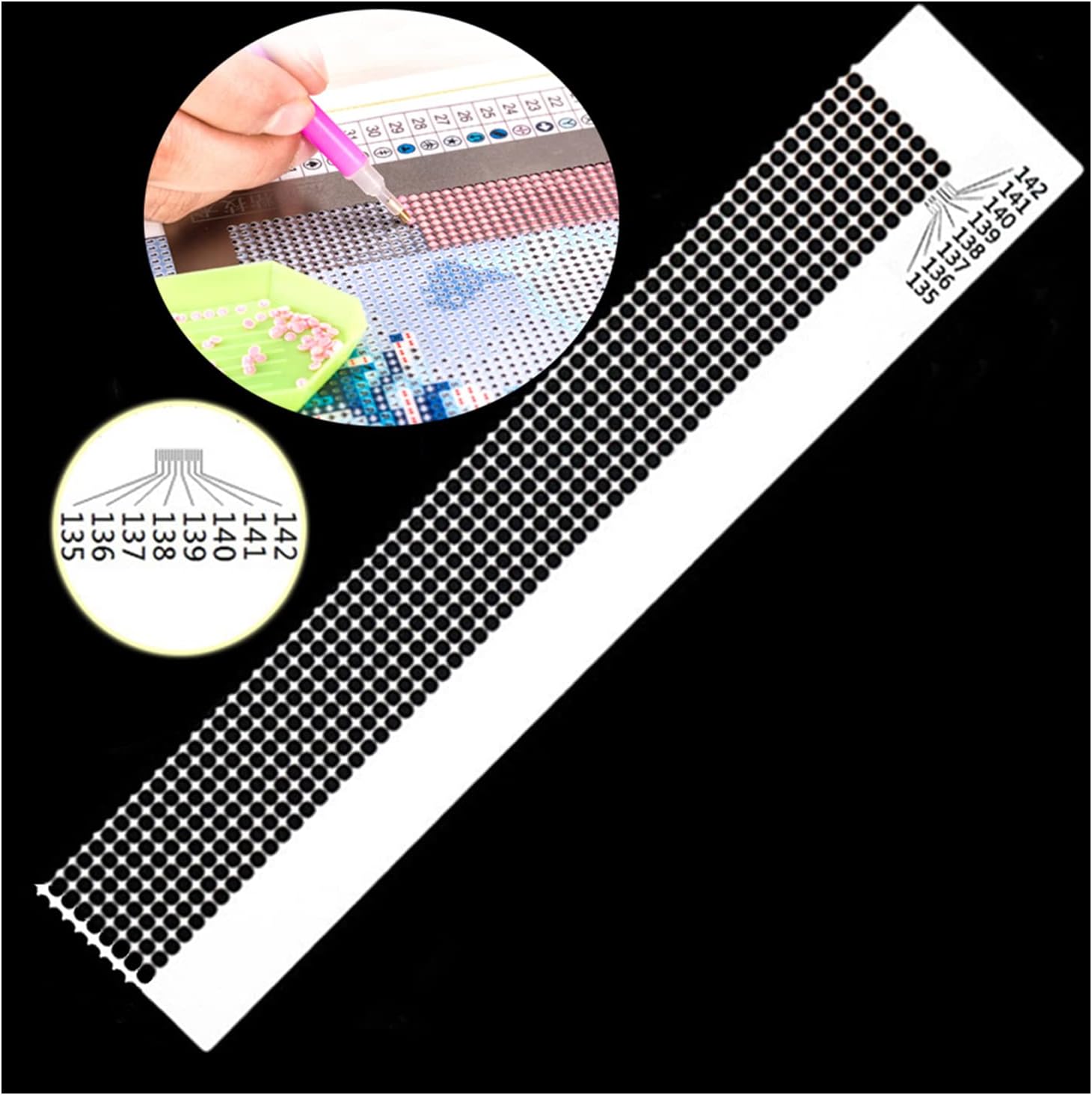 Mach dein Diamond Painting noch perfekter mit diesem praktischen Edelstahl-Lineal! Speziell für Square Diamonds entwickelt, hilft es dir, die Steinchen exakt auszurichten und gerade Reihen zu legen. Mit 216 Löchern die perfekt zu den Rastern auf der Leinwand passen. Aus rostfreiem Edelstahl gefertigt - langlebig und einfach zu reinigen. Die Nanobeschichtung verhindert, dass die Diamantssteinchen am Lineal haften bleiben. Super einfach in der Handhabung: Einfach auf die Leinwand legen und die Diamants durch die Löcher setzen. Mit ca. 11,5x3cm Größe handlich aber dennoch effektiv. Glatte Löcher ohne Grate beschädigen deine Diamants nicht. Perfekt für Anfänger und Profis gleichermaßen - spart Zeit und sorgt für ein makelloses Endergebnis. Ein kleines Tool das einen großen Unterschied macht bei deinem nächsten Diamond Painting Projekt!