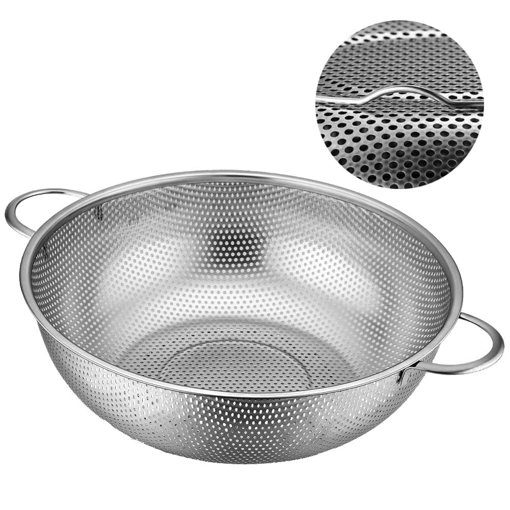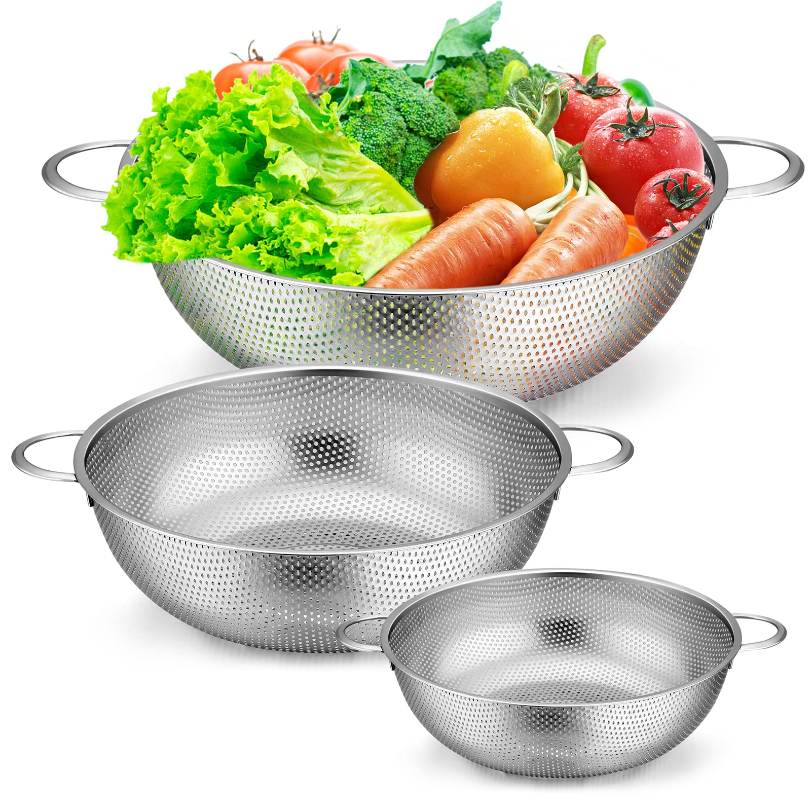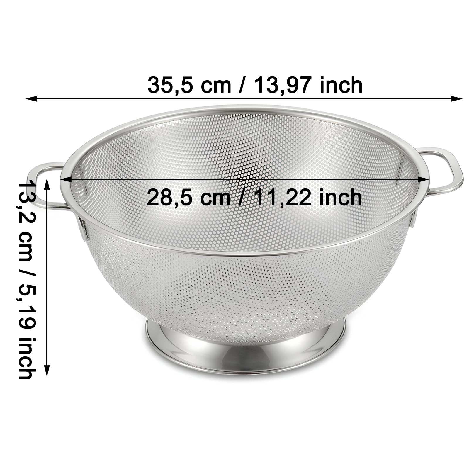 Kochst du gerne Nudeln? Dann brauchst du dieses Edelstahl-Sieb! 22,5 cm Durchmesser, 3 Quart Volumen - perfekt für Familien. Mikroperforiert, das heißt die Löcher sind so klein, dass selbst Spaghetti nicht durchrutschen. Aus reinem Edelstahl, rostfrei und spülmaschinenfest. Mit zwei fest verschweißten Griffen zum sicheren Halten und 3 stabilen Füßen - steht bombenfest überm Spülbecken. Kann auch als Dampfgarer oder zum Waschen von Reis verwendet werden. Vielseitiger als normale Siebe und sieht dabei noch richtig edel aus. Ein Küchenhelfer, den du jeden Tag benutzen wirst - und der ewig hält!