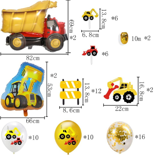 Bagger Luftballon Set 22 Stück - Kindergeburtstag Deko Mit Baustellen-Motiv