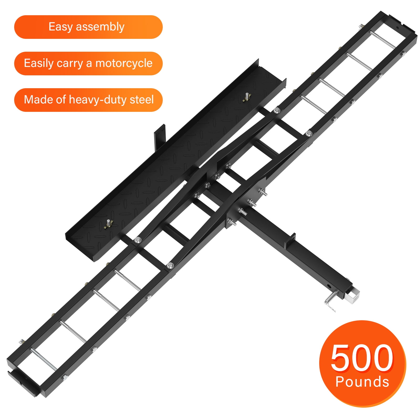 Transportiere dein Motorrad sicher und komfortabel! Dieser schwere Motorradträger von ASDMAOE hält bis zu 226kg aus - perfekt für Geländemotorräder, Roller und leichte Motorräder. Aus robustem Stahl mit Pulverbeschichtung, rostfrei und langlebig. Die 93cm lange Auffahrrampe erleichtert das Beladen, auch bei höheren Anhängerkupplungen. Mit 4 Ratschengurten und Kippsicherung für absolut stabilen Halt. Für 5cm quadratische Anhängerkupplungen (Klasse III/IV). Einfache Montage mit beiliegendem Werkzeug - alle Schrauben erst im letzten Schritt festziehen für einfache Ausrichtung. Maße: 193cm Länge, 97,5cm Breite. Ob für den Trip in die Berge oder zum nächsten Motocross-Event - mit diesem Träger kommt dein Bike sicher ans Ziel. Profi-Qualität für echte Motorrad-Enthusiasten!