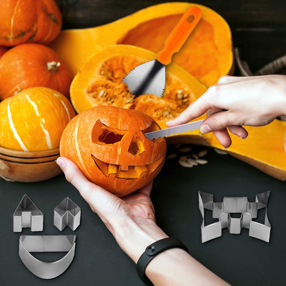 • 23-teiliges Halloween Kürbis Schnitzset - Mit Edelstahl Werkzeugen & Vorlagen