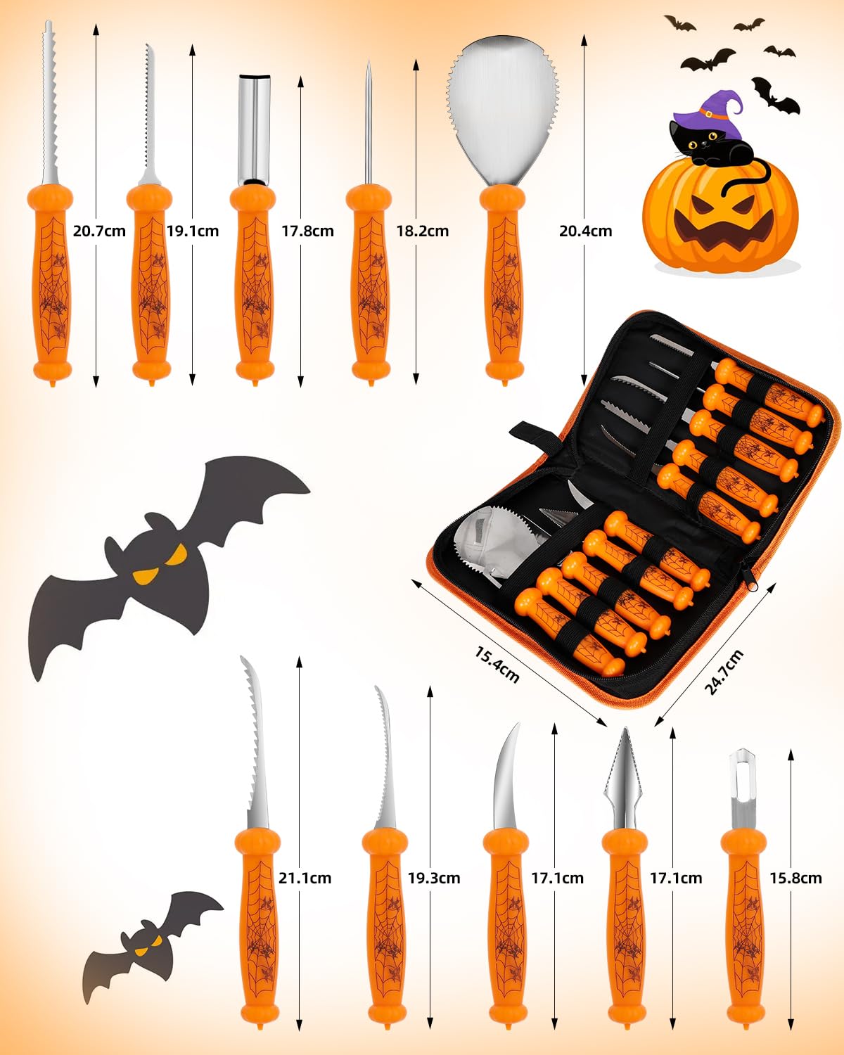 23-teiliges Halloween Kürbis Schnitzset - Mit Edelstahl Werkzeugen & Vorlagen