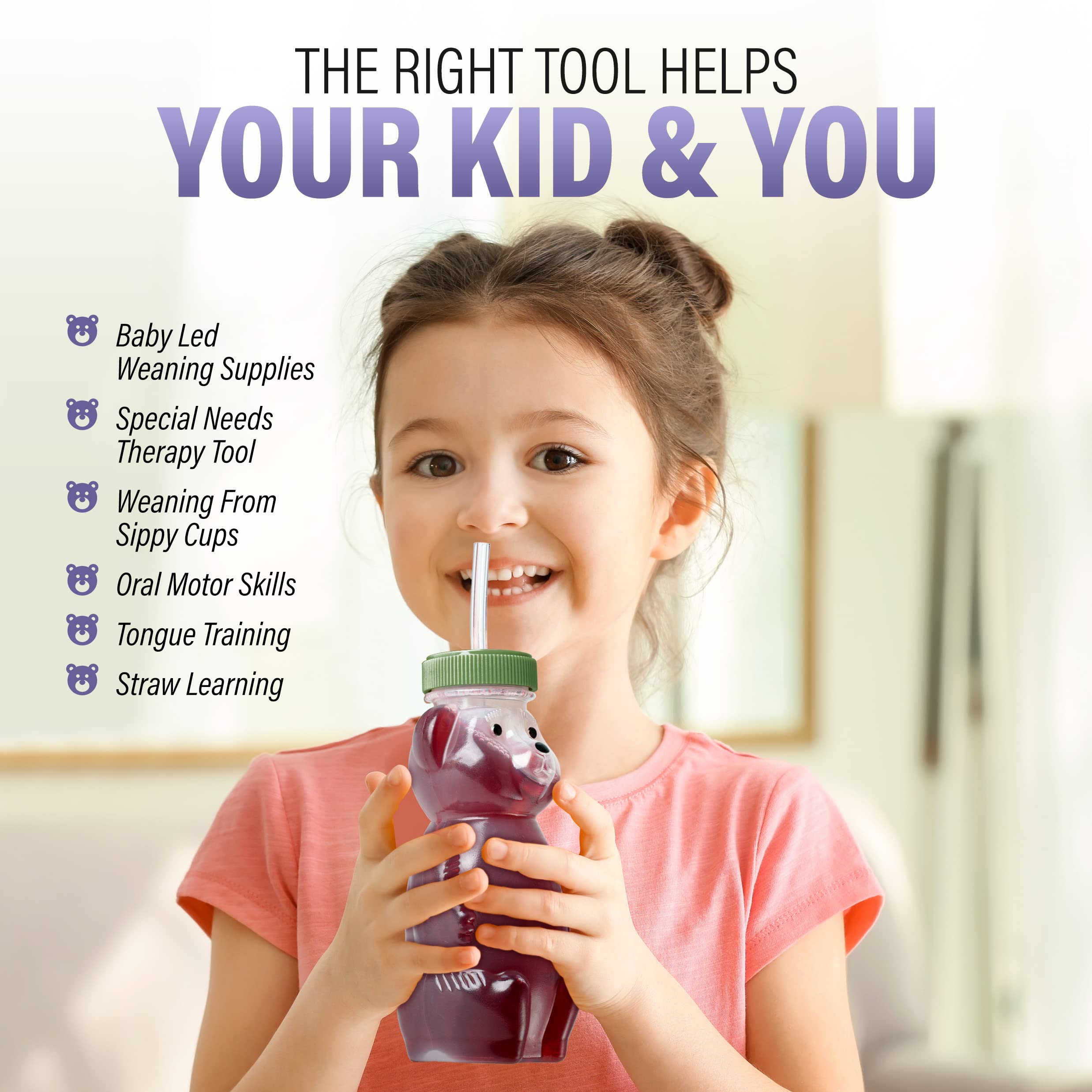 Der Becher ist aus dickem, flexiblem Kunststoff - weich genug zum Drücken, aber stabil genug gegen Herunterfallen. Perfekt für Kinder mit besonderen Bedürfnissen oder einfach für alle, die das Trinken lernen. Die Bürsten machen die Reinigung super einfach!