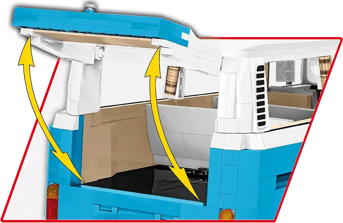 Die Türen gehen auf wie beim Original, die Räder sind lenkbar und der Innenraum ist so liebevoll gestaltet, dass du dich direkt in die 70er versetzt fühlst. Alle Aufdrucke sind direkt auf die Steine gedruckt - keine lästigen Aufkleber, die abgehen können. Die Bauanleitung ist super klar und führt dich Schritt für Schritt durch den Aufbau.