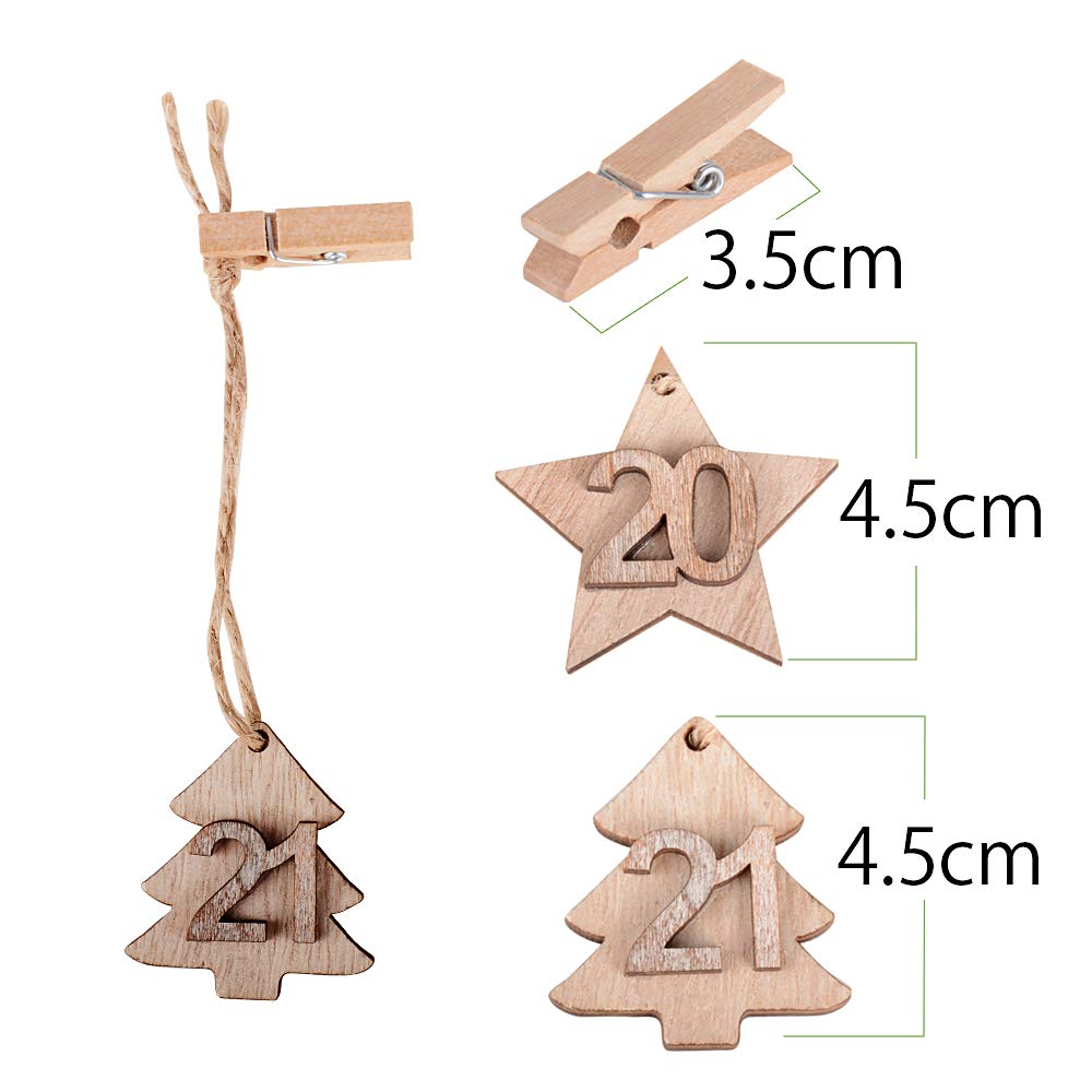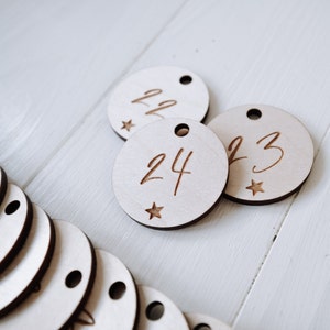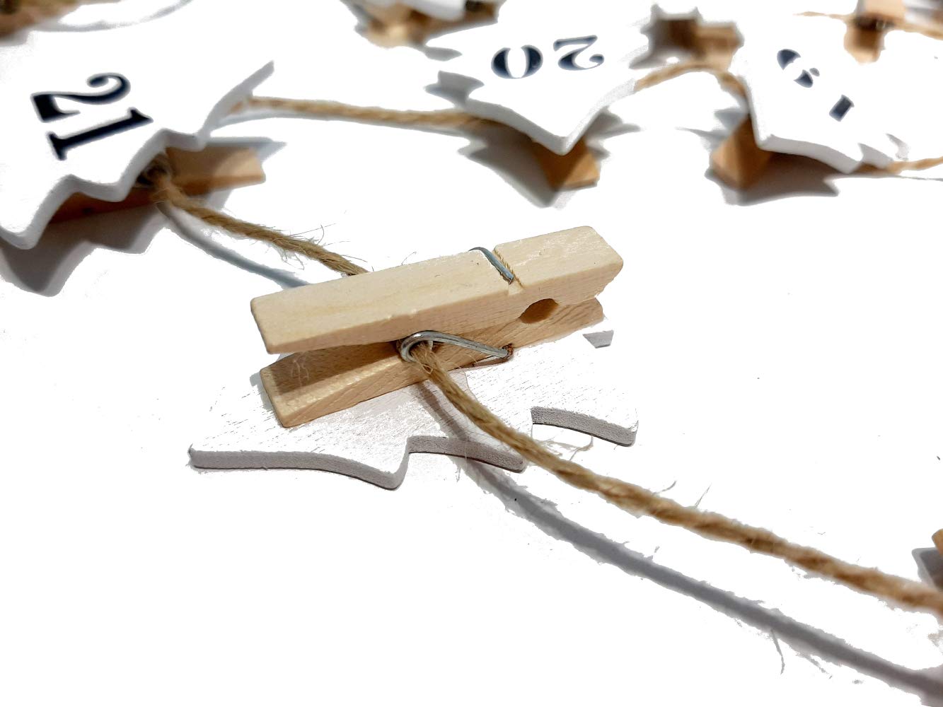 Weihnachtszeit ist Bastelzeit! Diese 24 Holzzahlen von 1 bis 24 sind perfekt für deinen persönlichen Adventskalender. Aus natürlichem, unbehandeltem Holz und mit sauberen Laserschnitt-Kanten - richtig hochwertig verarbeitet.\n\nDie 10 Meter Juteschnur sind schon dabei - einfach die Zahlen an deine Geschenkbeutel, Säckchen oder Tannenzweige binden und schon hast du einen individuellen Kalender. Sieht viel schöner aus als gekaufte Kalender!\n\nWiederverwendbar für viele Weihnachtsfeste und passt zu jedem Dekorationsstil. Ob für die Kinder, den Partner oder die ganze Familie - mit diesen Holzzahlen wird die Wartezeit auf Weihnachten noch schöner!