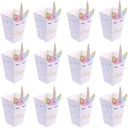 Zauberhafte Einhorn-Party? Unsere 24 Papier-Popcorn-Boxen (8,5x6,5x14,5cm) sind perfekt für Snacks, Süßigkeiten oder kleine Geschenke! In niedlichem Einhorn-Design begeistern sie kleine und große Gäste. Ideal für Geburtstagsfeiern, Baby-Partys oder als Tischdekoration. Einfach zu falten und stabil genug für Popcorn, Chips, Kekse oder Party-Favors. Mach deine Feier unvergesslich mit diesen bezaubernden Behältern - praktisch und dekorativ zugleich! Perfekt als Mitgebsel oder für die Buffet-Präsentation. Dein Party-Highlight!
