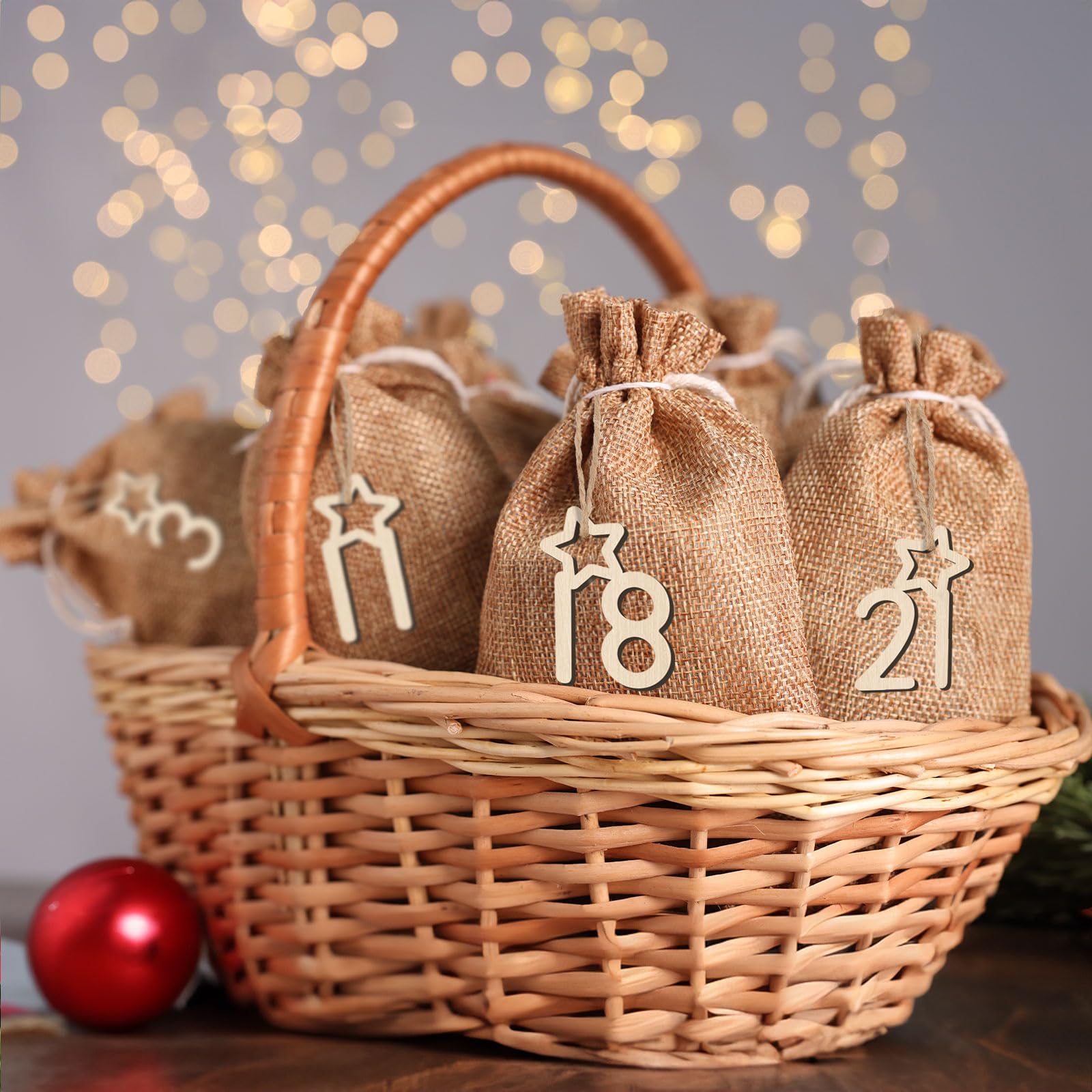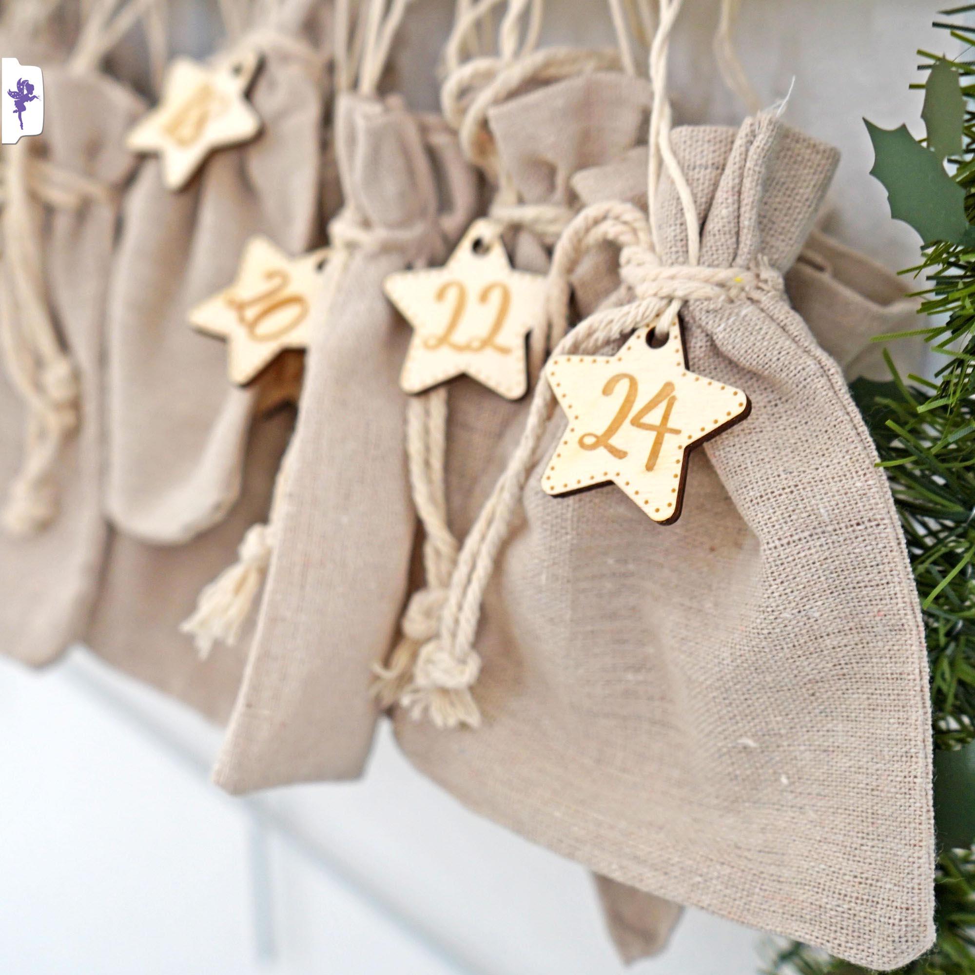 • Adventskalender Zahlen Holz 1-24 - Holzzahlen Mit Juteschnur Für Weihnachtsdekoration