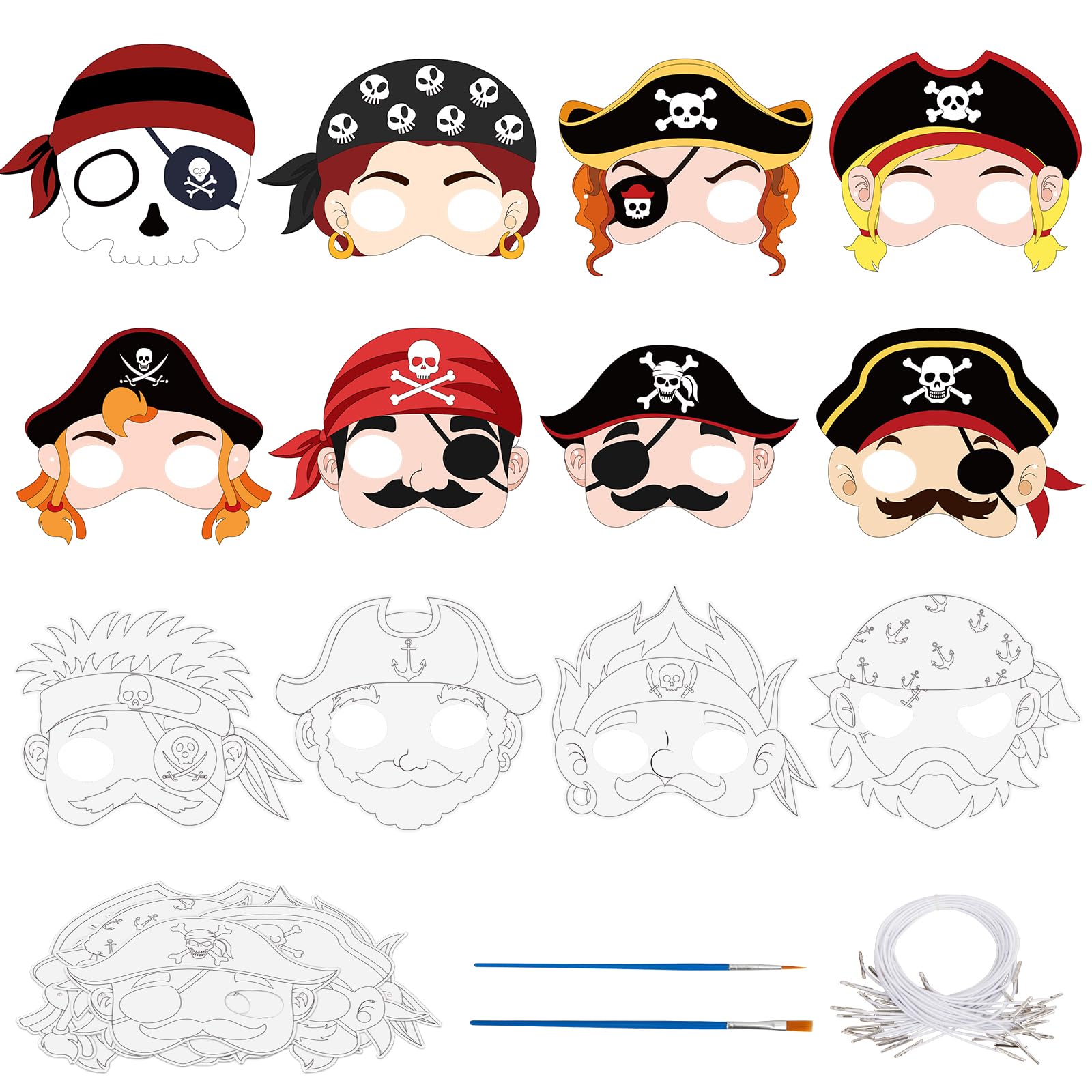 • DIFLAX Piraten Kratzbilder Set - 24 Stück Bastelmasken Für Kindergeburtstage