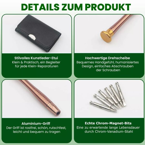 Dieses Schraubendreher-Set ist der beste Freund jedes Heimwerkers! Mit 24 verschiedenen Bits hast du für jede Schraube das passende Werkzeug. Die magnetische Spitze hält die Bits sicher fest - nichts fällt mehr runter. Die Ratsche macht Schrauben super einfach und der abnehmbare Griff passt auch in enge Ecken. Perfekt für Handys, Laptops, Uhren oder Möbelmontage. Alles sicher verpackt in einer praktischen Box - ideal für unterwegs!