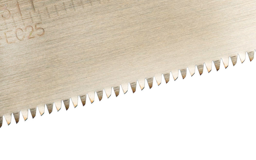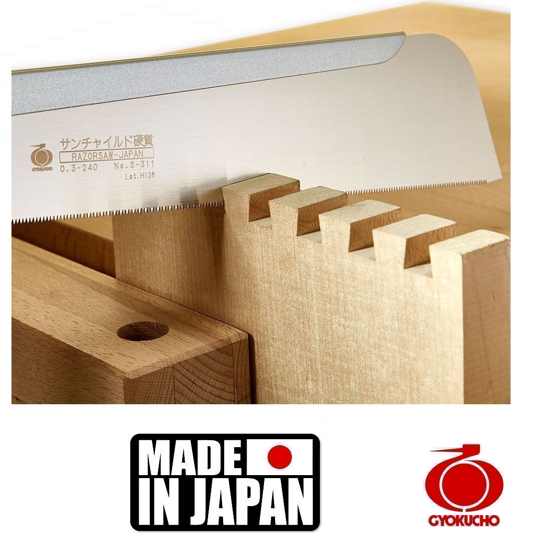 Hey Handwerker! Diese Gyokucho 311 Sun Child Dozuki Säge ist einfach perfekt für feine Holzarbeiten. Mit 240mm Klingenlänge und 530mm Gesamtlänge liegt sie super in der Hand. Die ultra-dünne 0,3mm Klinge entfernt kaum Material und hinterlässt eine mega glatte Oberfläche. Perfekt für Holz von 3mm bis 12mm Stärke - also ideal für kleine Schubladen, Schmuckkästchen oder andere filigrane Projekte. Die Zähne haben 1,3mm Abstand und sind differentiell impulsgehärtet - das heißt sie sind super hart (RC68) aber trotzdem weniger bruchanfällig. Das Vernickeln der Klinge hat drei Vorteile: Schutz vor Korrosion, schöner Glanz und weniger Harzanhaftung. Einfach mit warmem Wasser reinigen und sie ist wie neu! Funktioniert super in Weichhölzern und gemäßigten Harthölzern, mit etwas Fingerspitzengefühl sogar in exotischen Hölzern. Einfach eine richtig gute japanische Säge, die präzise Schnitte ermöglicht und lange hält. Ob Profi oder ambitionierter Hobbyhandwerker - mit dieser Säge machst du nichts falsch!